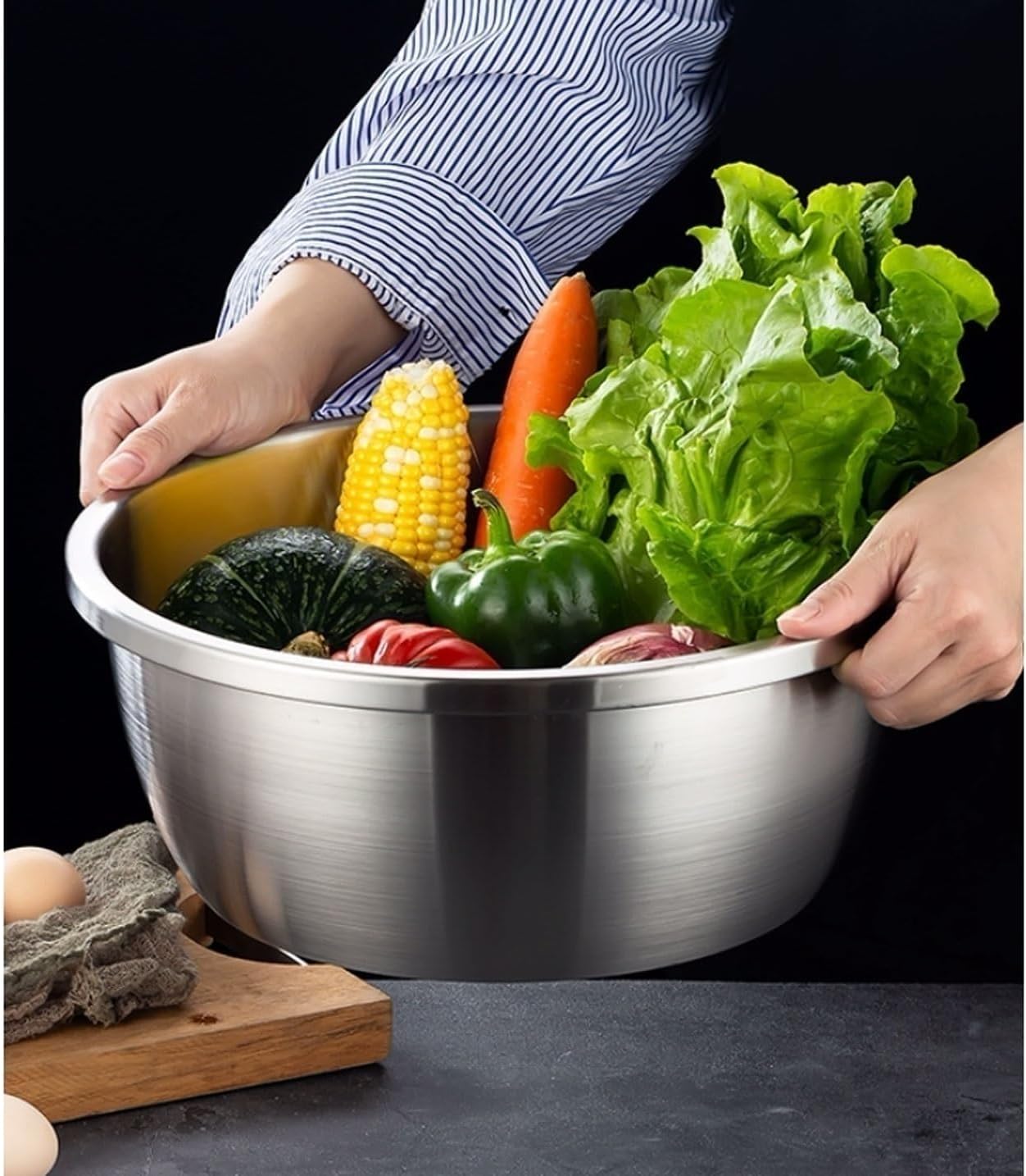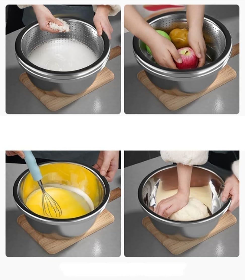 Products Name: Picnics Cookware Serving Trays Baking Cooking Mixing Bowls Pots and Pans Soup Bowls 304 Stainless Steel 4 Piece Sets Nesting Bowls 28-34cm Applicable: Induction cooker, gas stove, electric ceramic stove, electric heating stove, Heated Cooking Food. Material: 304 Stainless Steel. Pots and Bowls Size: Specification 28cm, outer diameter 28cm, height 11.5cm. Specification 30cm, outer diameter 30cm, height 12.5cm. Specification 32cm, outer diameter 32cm, height 13.0cm. Specification 34cm, outer diameter 34cm, height 13.5cm. Package Includes Stainless Steel Mixing Bowls * 4