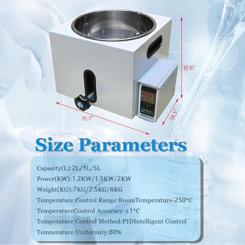 Introducing our Constant Temperature Oil-Water Bath, an essential tool for scientific research, chemistry applications, and educational purposes. Designed with precision, this oil-water bath features a lift type model with a capacity of 2L, 3L, or 5L, making it versatile for various laboratory needs. With a temperature control range from room temperature to 250°C and an impressive accuracy of ±1°C, this product ensures reliable results every time. The PID intelligent temperature control system provides optimal performance, maintaining a temperature uniformity of 80%, which is crucial for experiments requiring consistent conditions. Whether you're conducting experiments in a research facility or demonstrating chemical reactions in a classroom, our oil-water bath is built to enhance your workflow. The compact design, with inner chamber dimensions of 240*140mm (2L), 260*150mm (3L), and 280*170mm (5L), allows for easy integration into any lab setup while providing ample space for your samples. Available in power options of 1kW, 1.5kW, and 2kW, our oil-water bath meets diverse energy requirements, ensuring efficiency in your operations. The overall dimensions of 370*300*240mm (2L), 370*340*260mm (3L), and 400*370*270mm (5L) allow for easy handling and storage. Invest in our Constant Temperature Oil-Water Bath to elevate your laboratory experience. Create accurate and reproducible results with a reliable heating solution that supports your scientific endeavors. Unlock the potential of your experiments today!