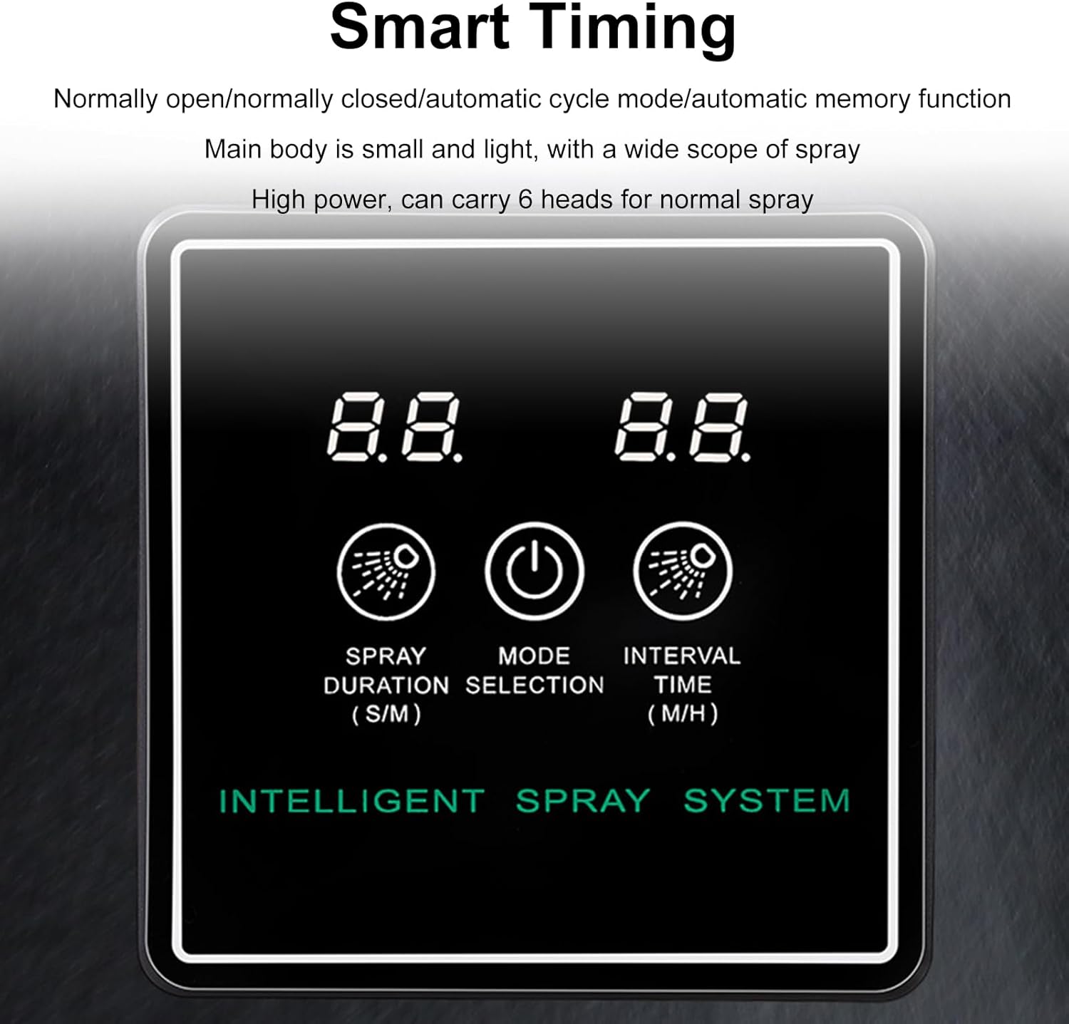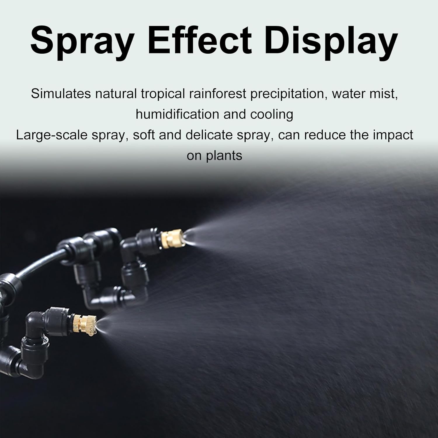 [AUTOMATIC REPTILE MISTING SYSTEM] Keep your reptile habitat ly hydrated with this smart misting system. It automates the addition process, creating a consistent rainforest environment for your pets. The system ensures optimal humidity levels for reptiles like chameleons, snakes, frogs, and lizards, promoting their health and wellbeing.[EASY TO USE TIMER FUNCTION] With just three simple buttons, you can set up the misting schedule. Choose between regular or automatic spray modes, and once programmed, the timer settings are stored automatically. The clear LED display makes operation straightforward, ensuring hassle- maintenance of your terrarium's humidity.[360° ADJUSTABLE MISTING NOZZLES] The system features smart rotating nozzles that provide complete 360° coverage. These nozzles can be easily disassembled and adjusted to fit terrariums of various sizes. The customizable spray direction ensures even distribution across the entire habitat for your reptiles' comfort.[QUICK INSTALLATION VERSATILE USE] Ready to use in minutes, this misting kit includes all necessary accessories for easy assembly. Beyond reptile habitats, it's for plant watering in gardens and greenhouses. The lightweight design (only 180g) and compact size make it suitable for multiple applications while maintaining high performance.[DURABLE HIGH-PERFORMANCE DESIGN] Built with sturdy ABS material, this black misting system delivers powerful performance with 30psi water pressure and 65db noise level. The 10m suction distance and 2m lift capability ensure efficient operation. Available in three sizes (5m/10m with 2-4 nozzles) to meet different terrarium needs.Spec:Type: Set S (5m, 2 nozzles), Set M (10m, 3 nozzles), Set L (10m, 4 nozzles) (Optional)Color: BlackStructure: ABSRated voltage: 5VRated current: 1ALift: 2mSuction distance: 15mNoise: 65db (30cm)Water pressure: 30psi (200kpa)Item Size: 8.45 * 8.45