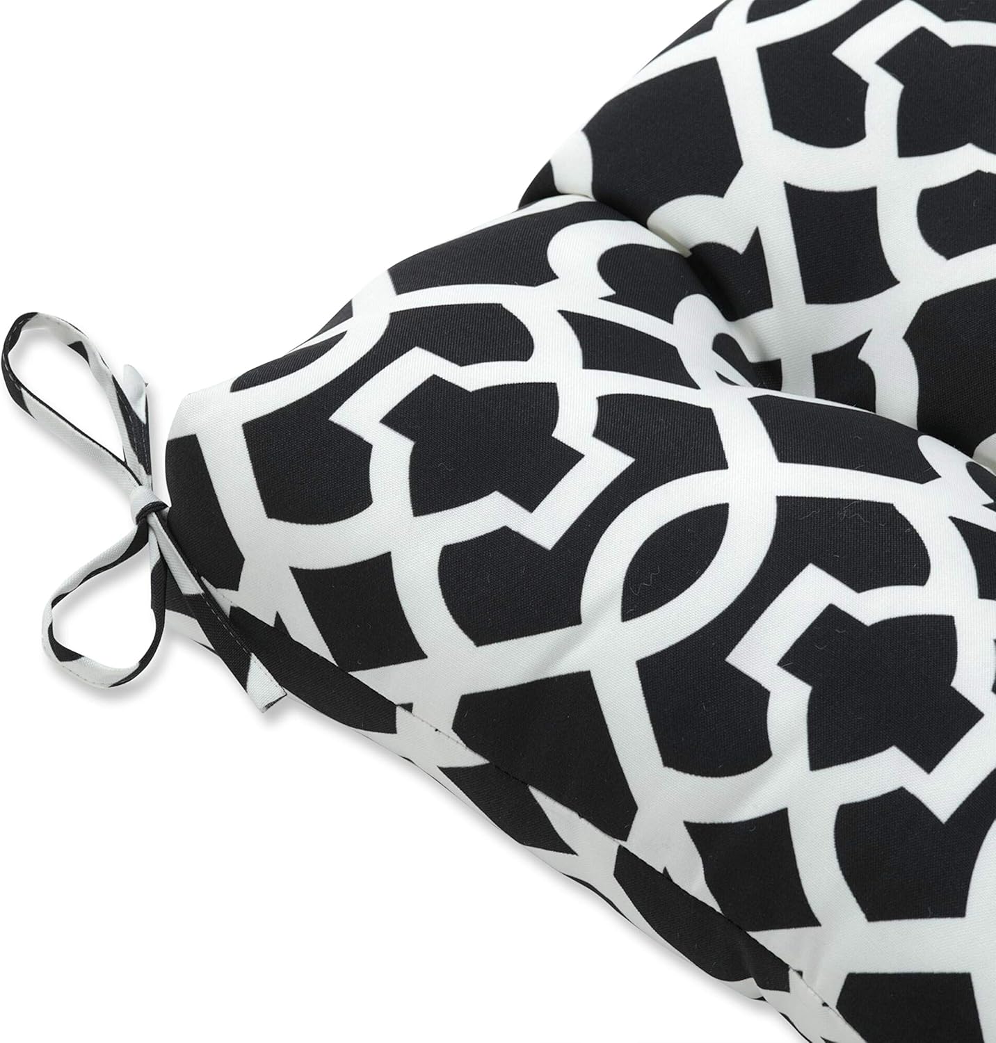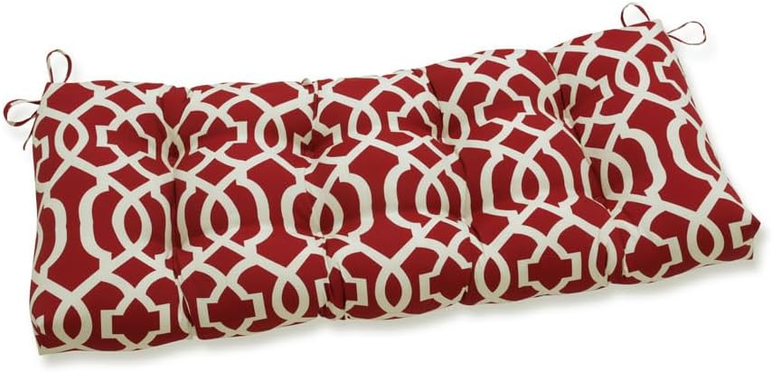 The highly attractive design of this large outdoor bench cushion grips your attention with elegance. On a deep shade of red, the interlocking white geometric pattern contrasts beautifully. Its durable fabric is fade-resistant. Additional features of this large outdoor bench cushion include tufted detailing, 14" ties and recycled polyester fiber fill with a sewn seam closure. Also suitable for indoor use.