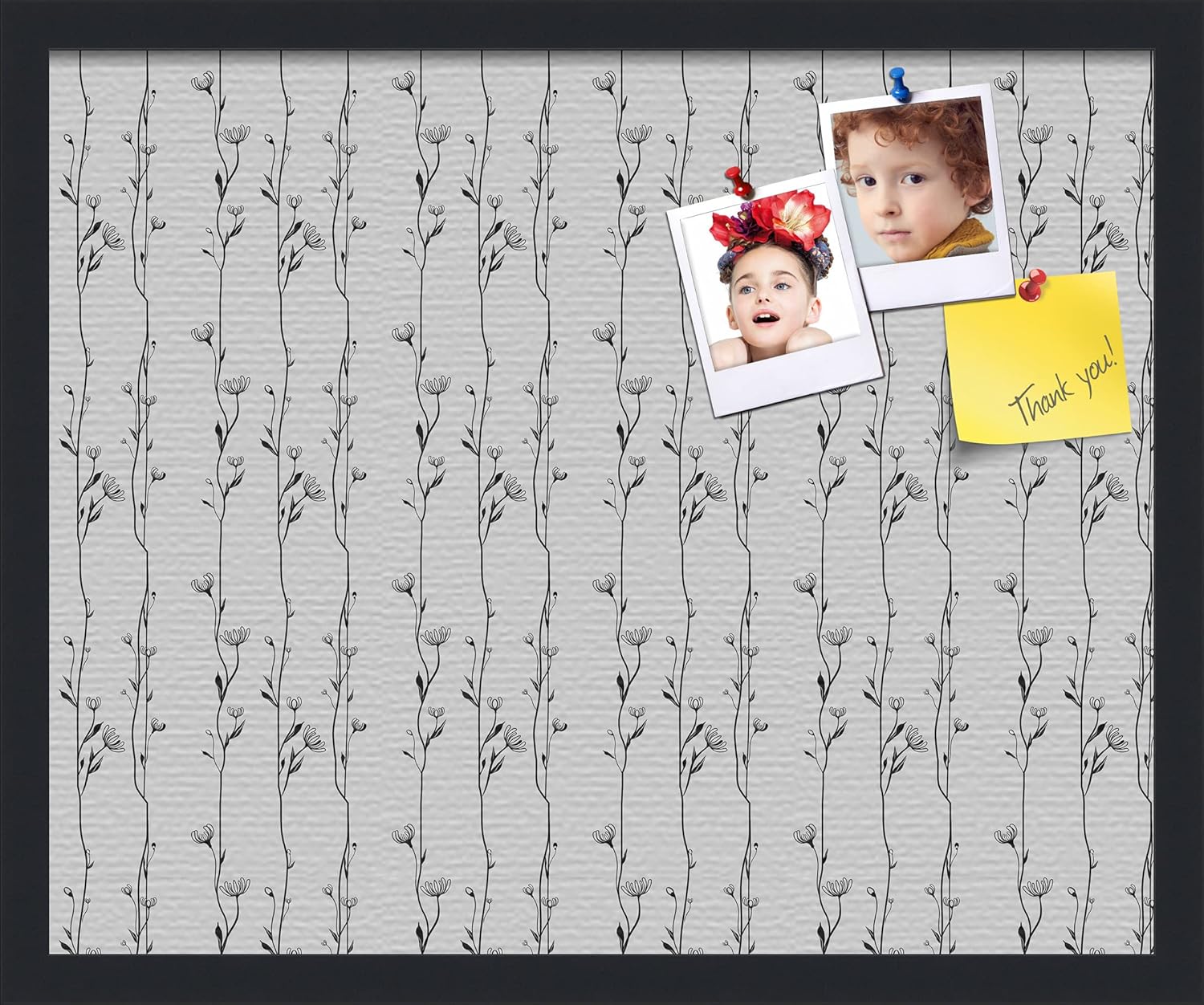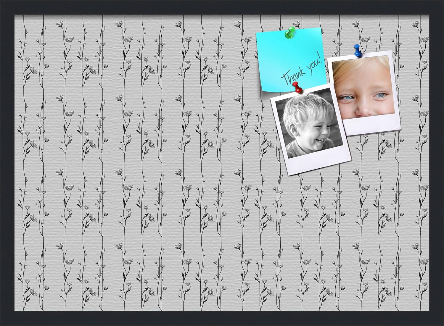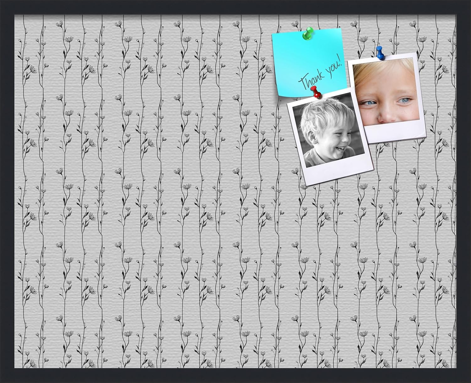 With our patented bulletin board design you can use any type of push pin or tacks or map pins to pin all of your pictures, reminders, notes or anything else. This modern Satin Black framed cork board is a perfect and functional solution to pin your notes and messages in any office, home or commercial environment. The canvas style material prevents most wear and tear, keeping your bulletin board looking pristine and new. All PinPix boards come with Easy-To-Hang hardware and simple installation instructions. Our boards are packaged with extra supportive corrugate material that is highly resistant to damage during shipping, all corugated material can be recycled once unpacked. ArtToFrames cork bulletin boards are designed and custom made to order! PinPix - Canvas Bulletin Board. Finished Size ~17x11(PinPix-123-FRBW26079)