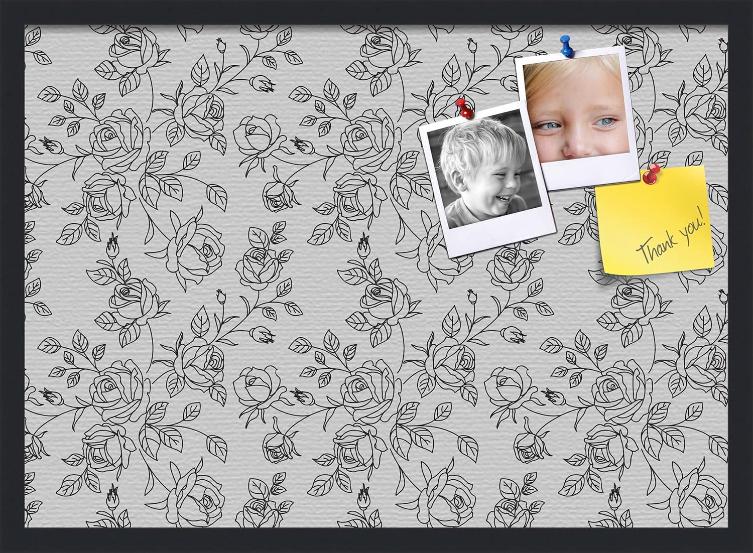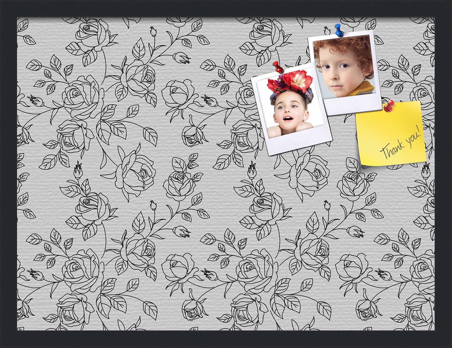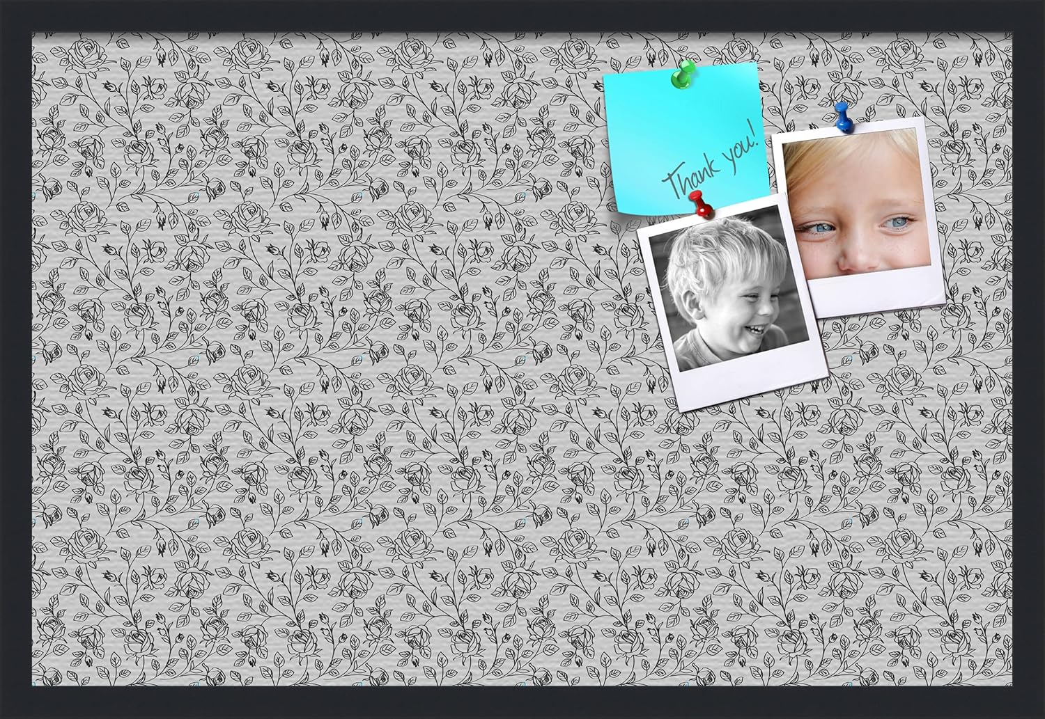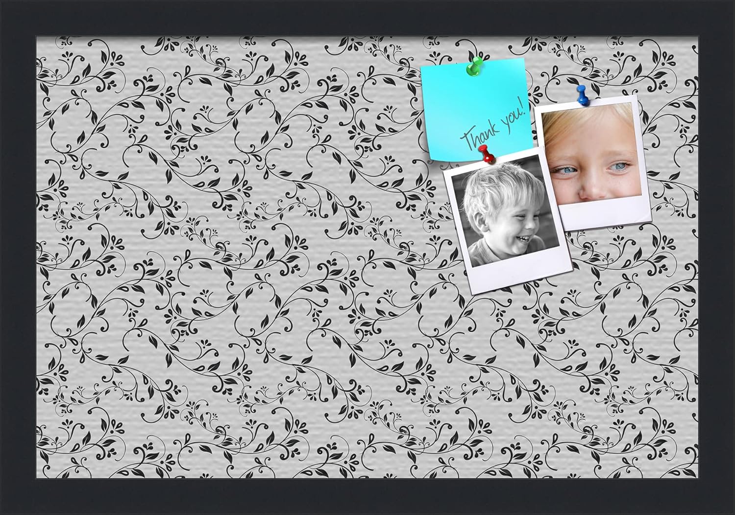 With our patented bulletin board design you can use any type of push pin or tacks or map pins to pin all of your pictures, reminders, notes or anything else. This modern Satin Black framed cork board is a perfect and functional solution to pin your notes and messages in any office, home or commercial environment. The canvas style material prevents most wear and tear, keeping your bulletin board looking pristine and new. All PinPix boards come with Easy-To-Hang hardware and simple installation instructions. Our boards are packaged with extra supportive corrugate material that is highly resistant to damage during shipping, all corugated material can be recycled once unpacked. ArtToFrames cork bulletin boards are designed and custom made to order! PinPix - Canvas Bulletin Board. Finished Size ~17x11(PinPix-123-FRBW26079)