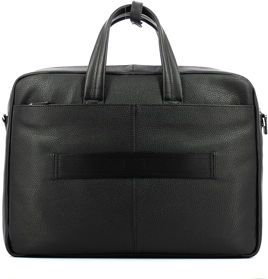 Elegant laptop bag from Piquadro made of high-quality, soft leather with removable, length-adjustable shoulder strap. The main compartment has a laptop and tablet compartment as well as three pen tabs, two slip pockets and a zip pocket. With the tab on the back, the bag can be conveniently put on a trolley. Number of main compartments: 1. Width: 9.5 cm. Height: 33 cm. Length: 44 cm. External dimensions (L x W x H): 44 cm x 9.5 cm x 33 cm. Brand: Piquadro Dimensions of the laptop compartment (L x W x H): 38 cm x 2 cm x 28 cm. Material: leather. Luggage type: soft luggage Laptop Bag Type: Bags & Messenger Laptop compartment: yes. Weight: 1.2 kg. Extras: key holder, pen tabs, carry handle, concealed address tag. Features: on trolley, mobile phone compartment, zip pocket, outer pocket(s), inner pocket(s). Key attachment: hook Closure type: zip. Tablet Compartment: Yes Volume in L approx. : 11-20