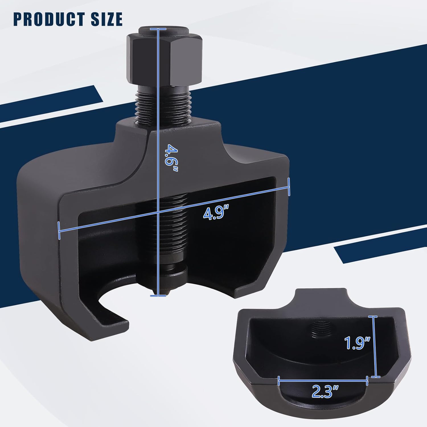 The DAWNROAD Pitman Arm Puller Tool is a robust, professional-grade implement designed specifically for heavy-duty truck maintenance and repair work. With its generous 2.5-4.1 inch opening range, this specialized tool makes removing pitman arms from steering gear boxes efficient and straightforward. The puller's versatile design accommodates various commercial truck models and equipment, ensuring reliable performance when you need it most. Built for durability and precision, this tool helps prevent damage to surrounding components during the removal process. Its sturdy construction and practical design make it an essential addition to any professional mechanic's toolbox or automotive repair shop. Whether you're working on fleet maintenance or individual repairs, this pitman arm puller delivers the force and control needed for successful steering component servicing.