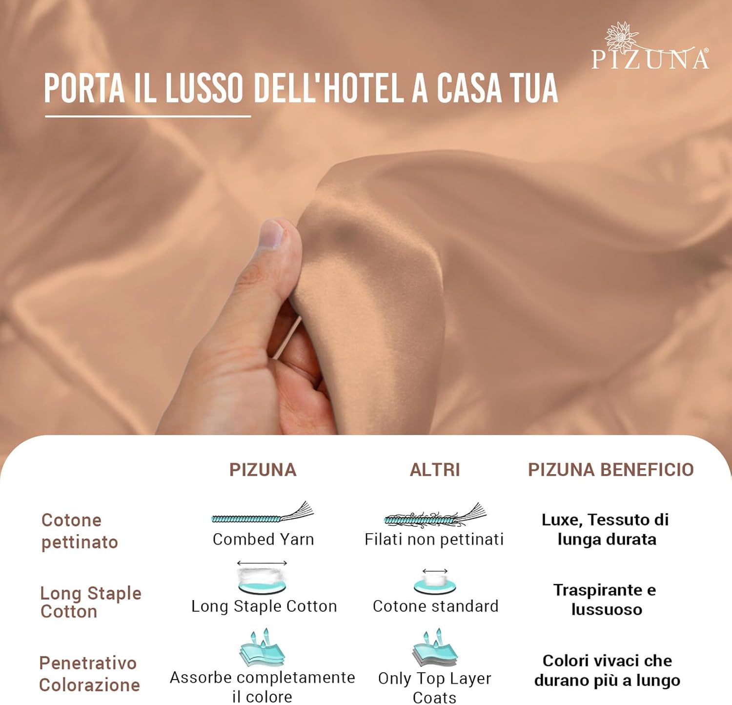 | Closure Type | Flat sheets, Pillowcases with Pizuna's 4 inch piped Hem & fitted sheets with specially patented stitching patterns using high-quality all-around elastic |