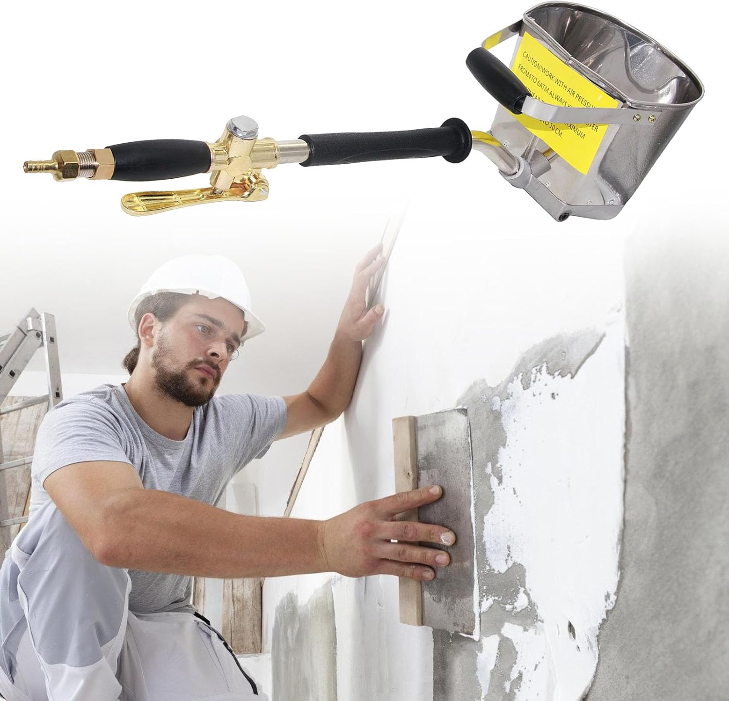 Pneumatic Mortar Sprayer Wall Texture Sprayer Wall Plaster Stucco Automatic Cement For PaintingFeatures:Achieve professional efficiency with this 4 nozzle cement mortar sprayer, designed for seamless air compressor integration to deliver rapid, uniform plaster and mortar application on wall and ceilings.Crafted from stainless steel, this sprayer features ergonomic handle and 3.5L capacity (0.9 gallons) for control and extended operational without frequent refills.Ideal for contractors, enthusiasts, and renovation professional seeking in large scale construction projects or home improvement tasks requiring coatings.Perfect for interior/exterior wall texturing, concrete repair work, or creating smooth finishes in commercial buildings, residential spaces, and industrial facilities with air compressor compatibility.The pneumatic mixing technology ensures ideal cement water ratios, producing cracked surfaces while maintaining consistent across repetitive construction applications.Specifications:Component:Stainless SteelCapacity: 3.5LSize:Approx.60cm/23.61inchPackage Includes:1 Set Pneumatic Mortar SprayerNote:1.Please allow 1-2cm errors due to manual measurement, making sure that you not mind before order. 2.Due to the differences between different monitors, the picture may not reflect the actual of the item.