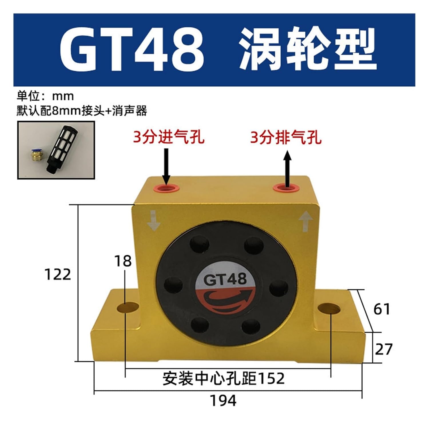 Pneumatic EquipmentPneumatic turbine vibrator vibration vibrator motor small oscillator beater pneumatic vibrator cylinder gt-8