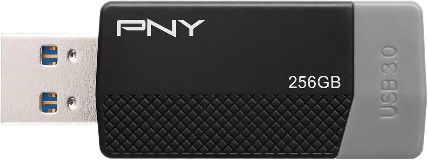 PNY's USB 3.0 Flash Drive is Built for speed & convenience. Experience USB 3.0 next generation speed performance with transfer speeds up to 10x faster than USB 2.0! Store and transfer large files faster than ever with USB 3.0 technology Transfer speeds approximately 10 times faster than standard PNY USB 2.0 Flash Drives Save and Share Documents, Videos, Photos, Music, and more with ease Sliding collar, capless design with integrated loop makes it easy to attach to key chains, backpacks and etc. Backwards compatible with USB 2.0 host devices at USB 2.0 speeds. 32GB flash drive for file transfers made easy. Available in assorted colors. Option for color choice is not available. 256GB Flash Drive for file transfers made easy. Designed in Black