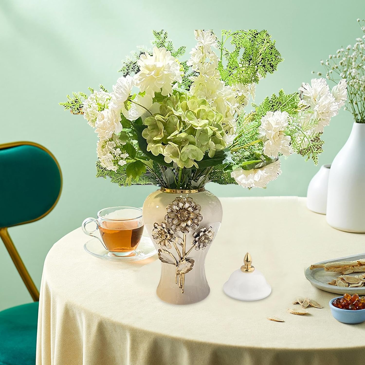 Description: - 【Fine Craftsmanship】Delicate ginger jar vase with carved flowers decor, gloss smooth surface - 【Ceramic Material】Storage container with lid is made of ceramic, lightweight, beautiful and elegant - 【Traditional Styled】Porcelain flower vase suitable for matching with a variety of flowers, dried flowers, artificial flowers, branches, dry branches, etc. - 【Multifunction】Food storage jar, tea canister, also as a vase for dried flower, florals, display, artwork for home, living room decorations - 【Applications】Storage Jar Flower Vase suitable for all various occasions like office, meeting room, bedroom, parties, study and gift for warm house, farmhouse, wedding, birthday etcSize Chart:(bottom diameter x height) approx 19cmx31.5cm/7.48inchx12.40inchPackage Includes:1 Piece Porcelain JarNote:Please allow slightly errors due to manual measurement and different monitors.