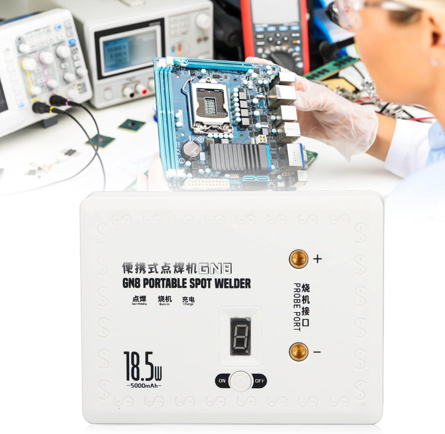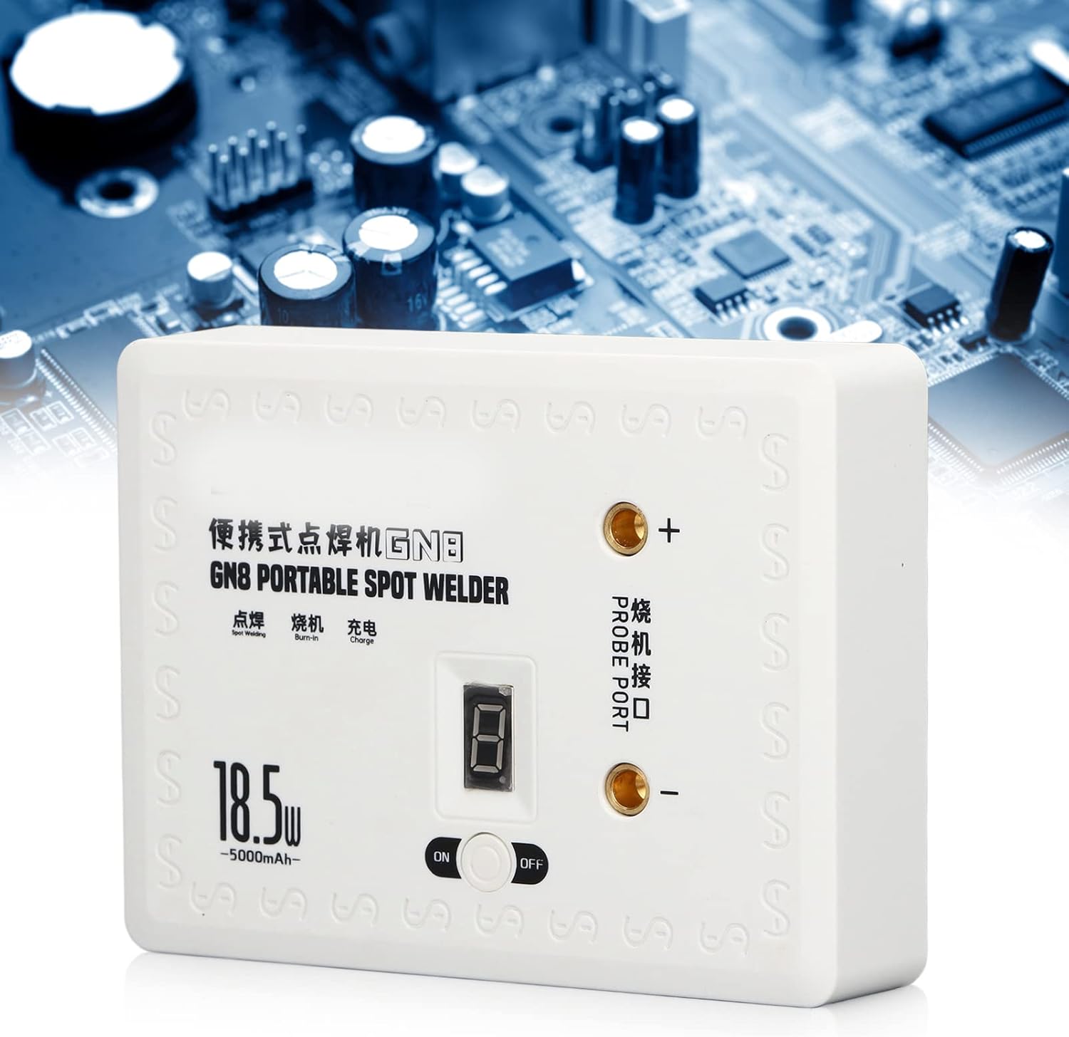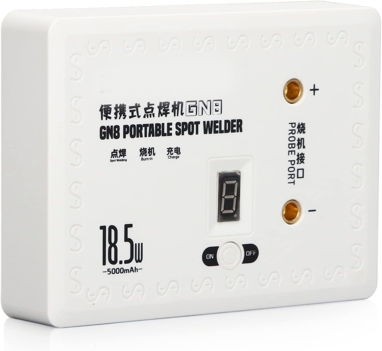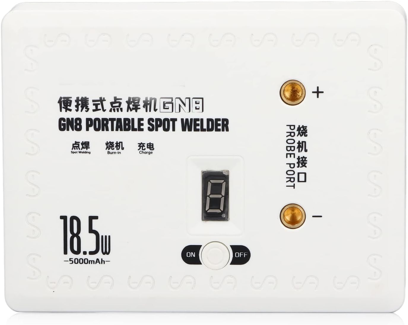 1. MULTIPLE FUNCTION: This lithium battery spot welding machine can also be used as a short circuit detector and as a portable fast charging power bank.2. 8 ADJUSTABLE POWER: With adjustable output power, the 1st to 7th level is the battery spot welding function, the 8th level is the burn in function, easy to adjust.3. WITH PENS: Equipped with quick disassembly solder point pen, with gold plated terminal, oxidation and , easy to operate and carry.4. WITH BATTERY: Equipped with 2pcs 5000mAh lithium batteries, which are portable rechargeable and can be used as mobile power source.5. WIDE APPLICATION: Suitable for battery board replacement and welding, and can also be used for short circuit detection of mobile phone and computer.Specification:Item Type: Portable Spot WelderCharging Time: 3 hoursOutput Voltage: 4.2V (Maximum)Output Current: 650A (Maximum)Burn In Output: 150A (Maximum)Recommended Strip Thickness: 0.1-0.2mmBattery: lithium battery x 2 5000mah (with built in battery)Scope of Application: Suitable for the replacement and welding of small battery boards, and supports the welding of lithium battery sheets; it solves the problems of welding of copper and aluminum materials that cannot be welded, and the problem that the power of non mobile phone special design is too large, and it is easy to break down the battery chip.Package List:1 x Portable Spot Welder2 x Spot Welding Pens2 x Test Wires1 x Sheet1 x Data Cable1 x User Manual3 x Accessories
