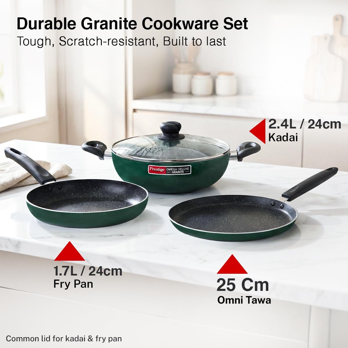 | Included Components | Fry Pan 24cm Dia - 1U, Kadai with Glass Lid 24cm Dia - 1U, Omni Tawa 25cm Dia - 1U |