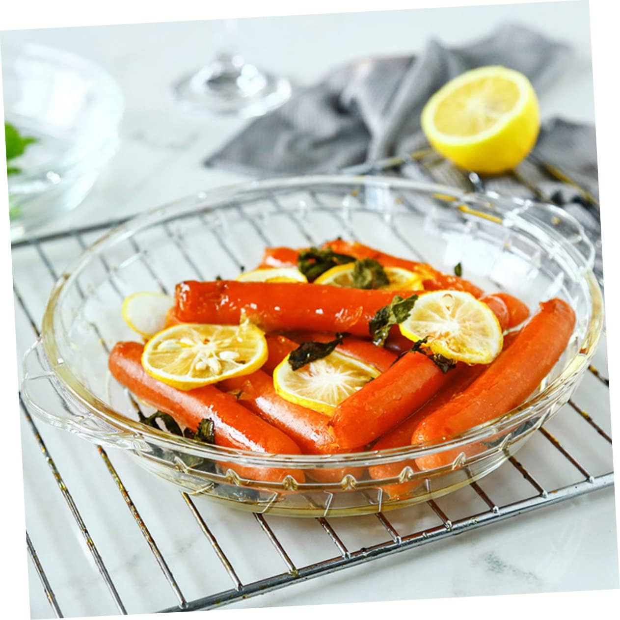 Package Include 2 x Glass Trays Features -Material: Glass -Size L: 285X255X43cm/1122X1004X169in, 1330ml(Capacity) Grill Plate with Handle. -Size S: 255X225X43cm/1004X886X169in, 1030ml(Capacity) decorative. -Color: Transparent -resistant Dish - These food serving tray could be used in oven, microwave oven, refrigerator and dishwasher, etc Cooking Dish. - Visible quality, palpable touch, and healthy, is your container cake dinner. - Thickened tempered glass material can withstand the temperature range of -20℃ to 300℃ Housewarming . - Heating in a microwave oven is allowed, and -resistant, long serving time rectangular baking. - resistance and sturdy, very easy to clean and wash, and small baking dishes for oven.Goods DescriptionClear Plate Also, could be a your friends.baking pans This item is a set of 2 tempered -resistant glass baking trays, which is well-made by tempered glass material, for long term use.Microwave Plate for your daily cooking.Microwave Grill Plate It features high temperature resistance, environmental, healthy and .Scalloped Pie Plate Use it to do some cooking for your families and friends