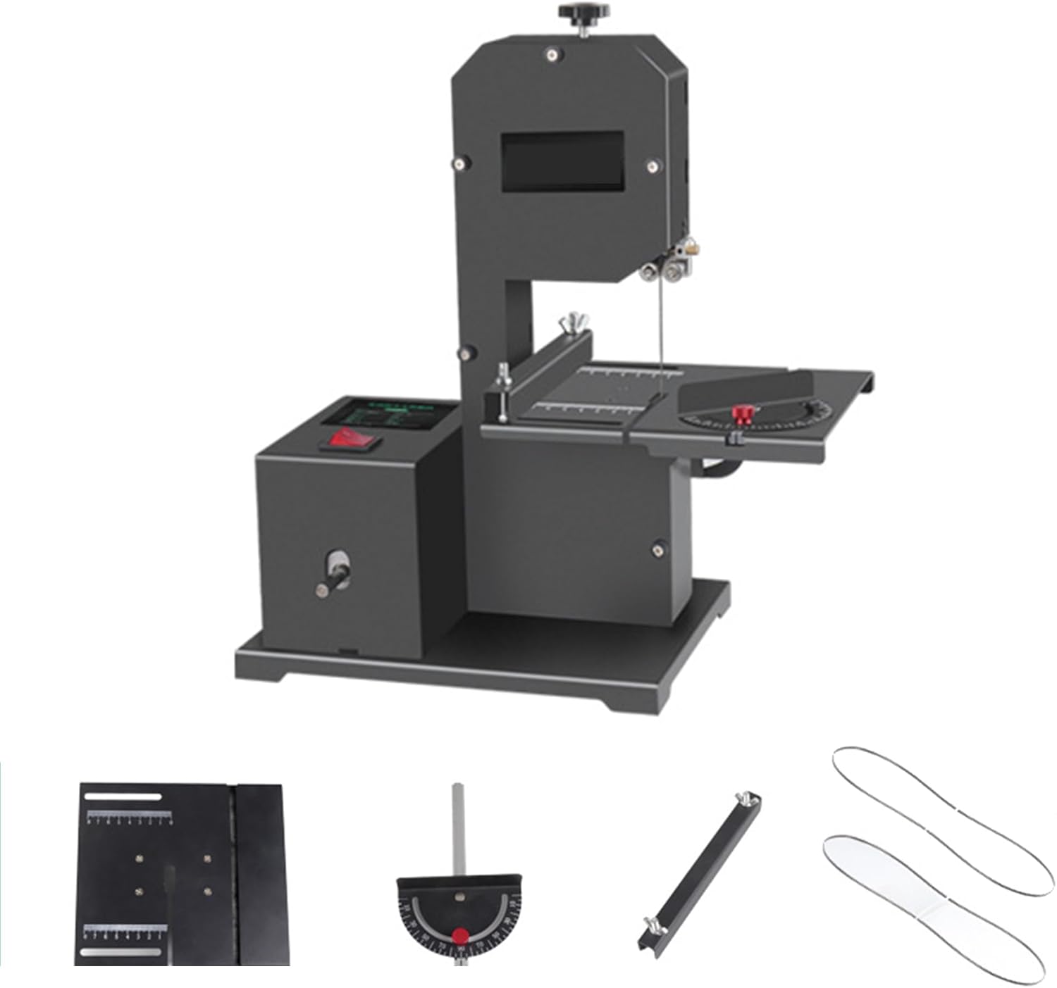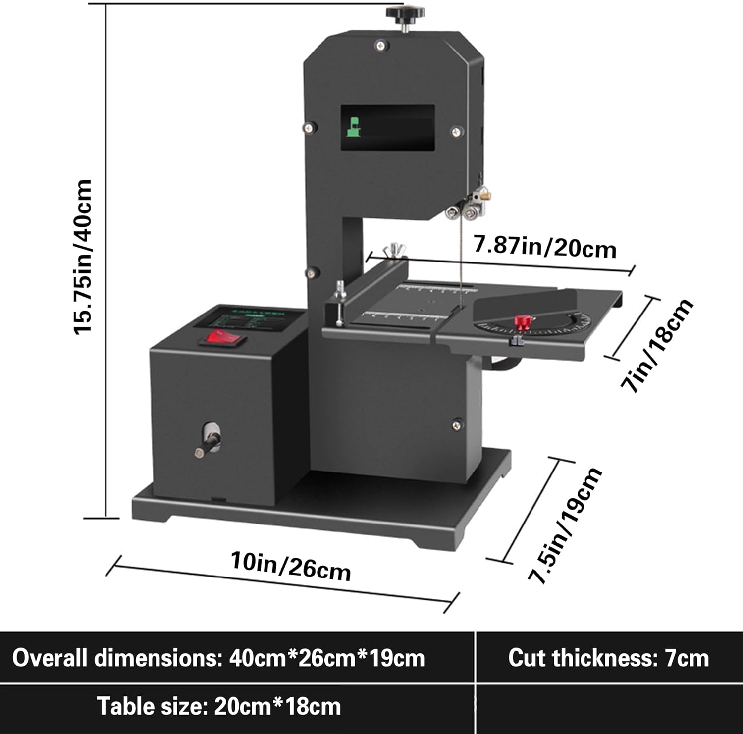 This versatile vertical woodworking band saw is designed for small workshops, home DIY enthusiasts and professional craftsmen. It combines powerful power, precise cutting and flexibility. It is an ideal partner for processing a variety of materials such as wood, acrylic, foam, etc. Say goodbye to bulky large equipment and embrace the perfect combination of efficiency and portability!Versatile and Expandable with Ease - Featuring a highly compatible design, it allows for easy installation of various accessories such as drill chucks, grinding wheels, cloth wheels, flexible shafts, and more, truly offering an all-in-one machine solution.Upgrade Your Workbench with This Versatile Bandsaw!【Specifications】- Product name: Benchtop bandsaw- Material: cold-rolled steel- Rated power: 800W- Cutting height: 70mm / 2.75in- Throat depth: 90mm / 3.54in- Angle ruler: 0-90°- Workbench angle adjustment: 0-45°- Saw blade size: 730mm (perim) / 3.2mm (width)- Table size: 200 x 180mm / 7.9 x 7.1in- Net weight: 8.5 kg / 18.74lb- Machine dimensions: 395 x 260 x 190mm / 15.6 x 10.2 x 7.5in