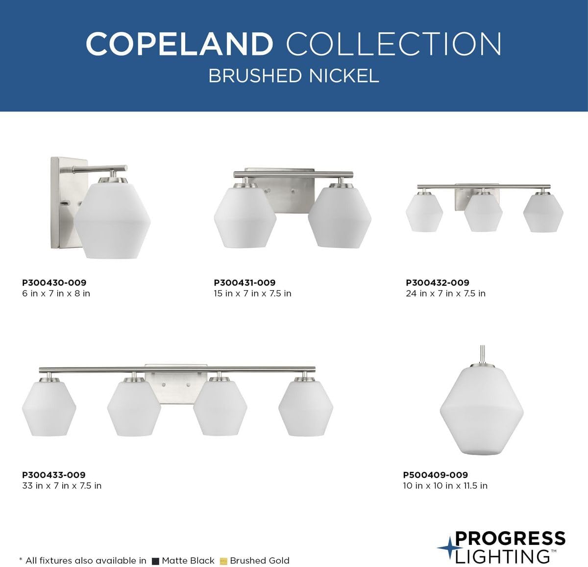 A softened diamond silhouette brings modern appeal to the Copeland Vanity Light. The geometric opal glass shade delivers elegant illumination to bathrooms in mid-century modern and contemporary settings. Mount the light fixture with the glass facing up or down for more design flexibility.