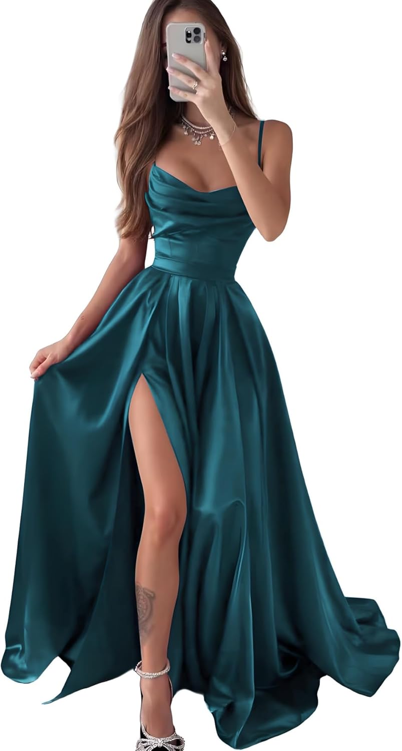 | Embellishment Feature | Side Slit, Spaghetti Straps |