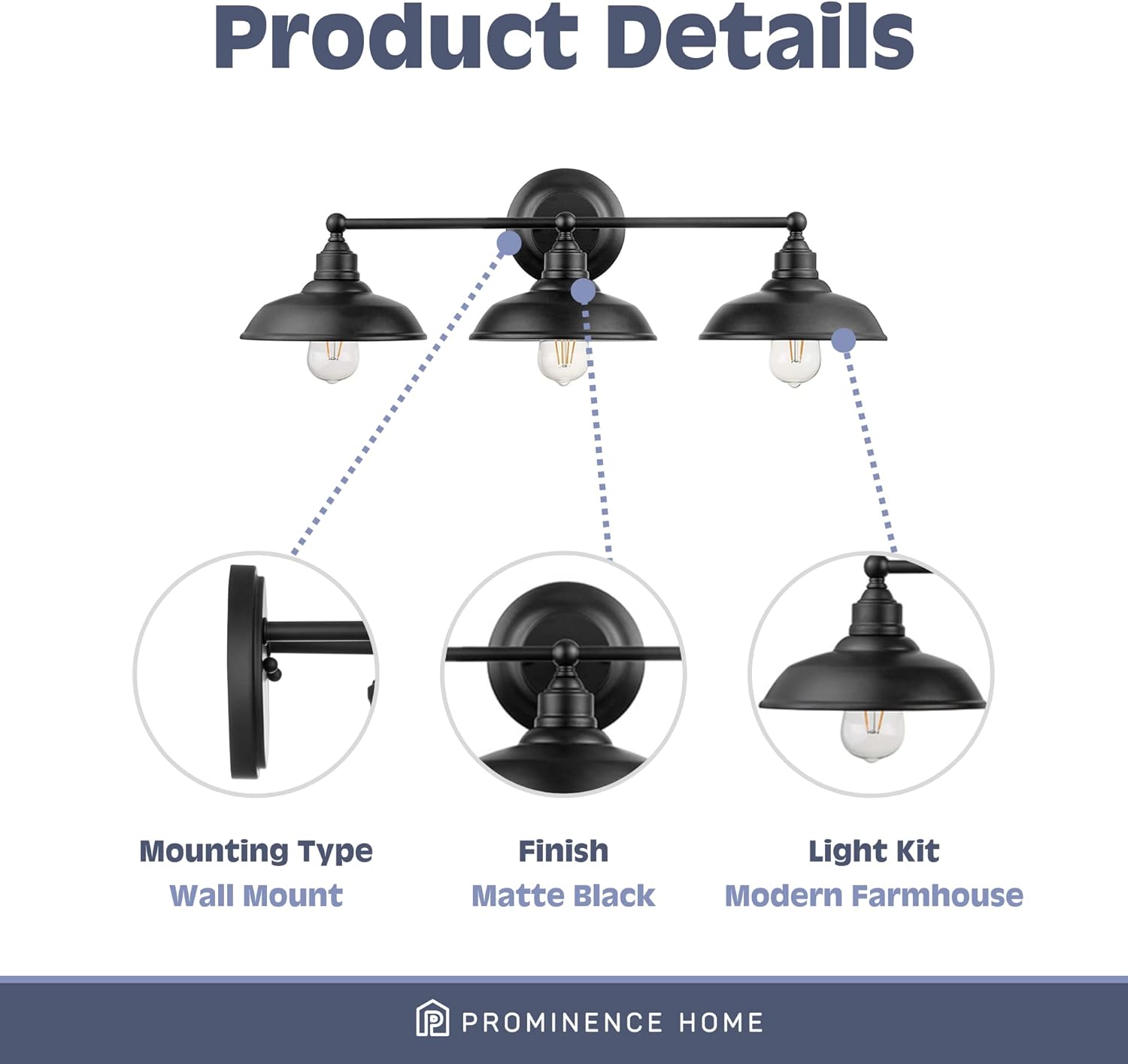 Add vintage flair and industrial farmhnouse charm with this 3-light fixture. Featuring a circular backplate and industrial chic steel shade, this lovely luminary will instantly add flair to your space. Available in Matte Black and Brushed Nickel to flawlessly fit a variety of decor styles.