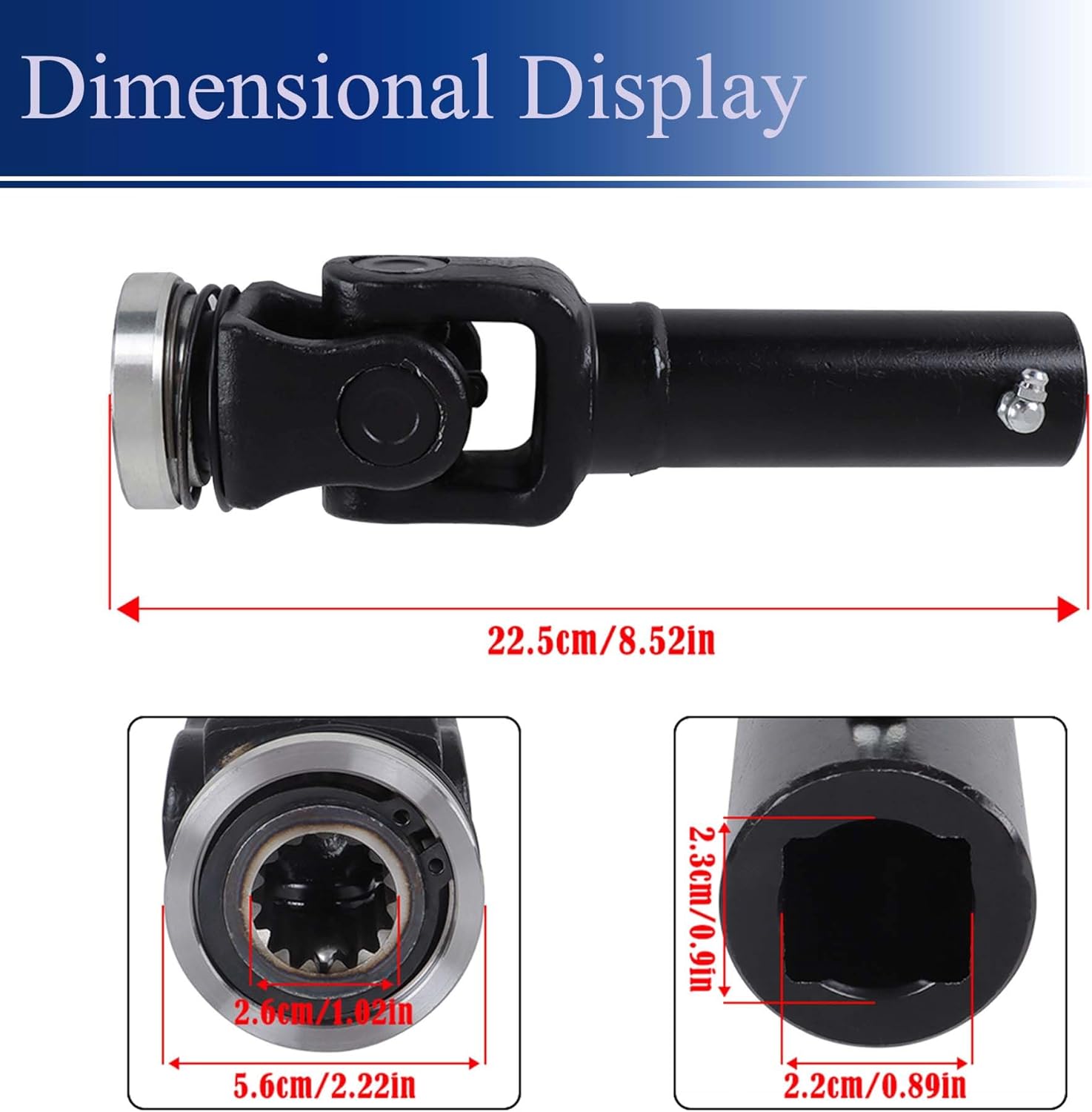 PTO half-sleeve axle with U-jointFeature: 1. Excellent materials, stable performance, firmness and reliability, and long service life.2. Perfect replacement of damaged and worn parts to ensure the smooth operation of the lawn mower.3. Exquisite technology, accurate size, simple installation, strict production and inspection process, and meeting the application conditions.Compatible:Replacement for Grasshopper FrontMount Mowers built since 1985, Replacement for 3344, 3348, 3452, 3461 decksReplacement for 398914Package Included:1 x Female PTO half shaft U-joint coupler deck drive (As shown in the figure)Note: Please carefully check the part number and product picture before buying to ensure that the purchase is accurate