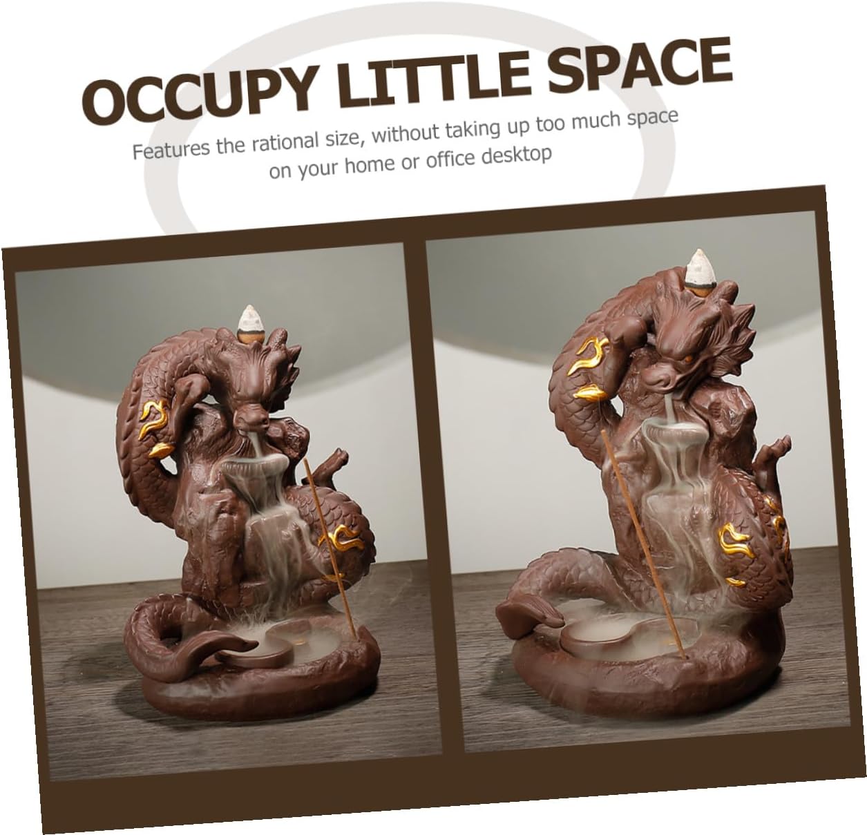 Package Include 1 x Backflow Incense Burner Characteristics -Size: About 18.50X14.00X12.00cm/7.27X5.50X4.72in -Color: Brown -Product Info:incense burner -Material: Purple Sands - You can send it as a housewarming to your friends or family, they will love it Creative Dragon Incense Burner. - Excellent workmanship, carefully down to every detail to give it an appearance Purple Sand Censer. - One-piece molding, vigorous atmosphere, creative dragonappearance, unique charm Dragon Design Censer. - It is made of good materials and has a creative dragon shape design. Fine workmanship and . - Thick material, our product is not easy to damage, which can be used for a long time.Goods DescriptionBackflow Cone Incense Holder This item is a decorative backflow incense burner with dragon shape which is well-made with , vivid and delicate.Dragon Censer Decor Great for aroma.Incense Stick Holder It comes with the delicate dragon appearance design, can help you completely relax, the level of life.Purple Sand Craft Decor It is an excellent for family, friends, colleagues, etc