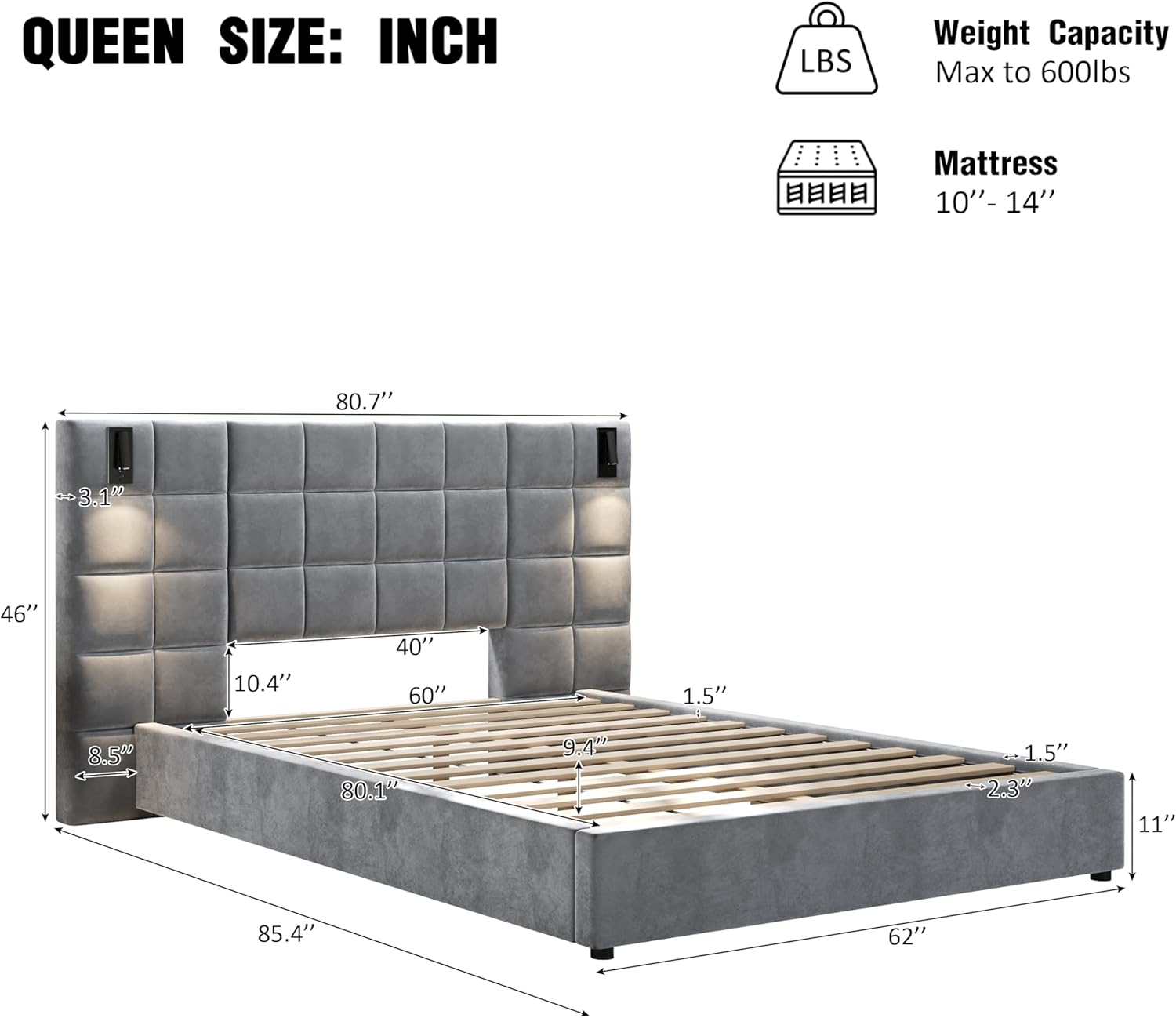 | Other Special Features of the Product | Convenient USB Charging Ports, Fade Resistant, Integrated LED Wall Sconces, No Box Spring Needed, Squeak Resistant |
