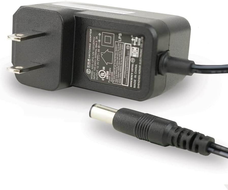 UL approved Switching Power supply. Input Voltage: 100-120V Input Voltage range: 100V-120v Input Voltage frequency: 50hz, 60hz Output Voltage: 12Volts Output Voltage Range: Minimum 11.4V, Maximum 12.6V Output Current: 1Amp Cord Length: 56inches Connector: 5.5mm Outside Diameter, 2.1mm Inside Diameter, 10mm Long, Center positive. Minimum Efficiency: 77.75% @ 115Vac input and output at full load. Over-Current/Short Output Protection: The power supply will withstand a continuous output short. Normal operation will resume when the short is removed. Lead Free & RoHS compliant Note: Standard power supply tip sizes are (OD - Outside diameter, ID - Inside diameter): 5.5mm OD/2.5mm ID, 5.5mm OD/2.1mm ID This power supply comes with a 5.5mm OD / 2.1mm ID tip. Trademark: R-Tech Registration# 4777168 DVE UL Listed E135856