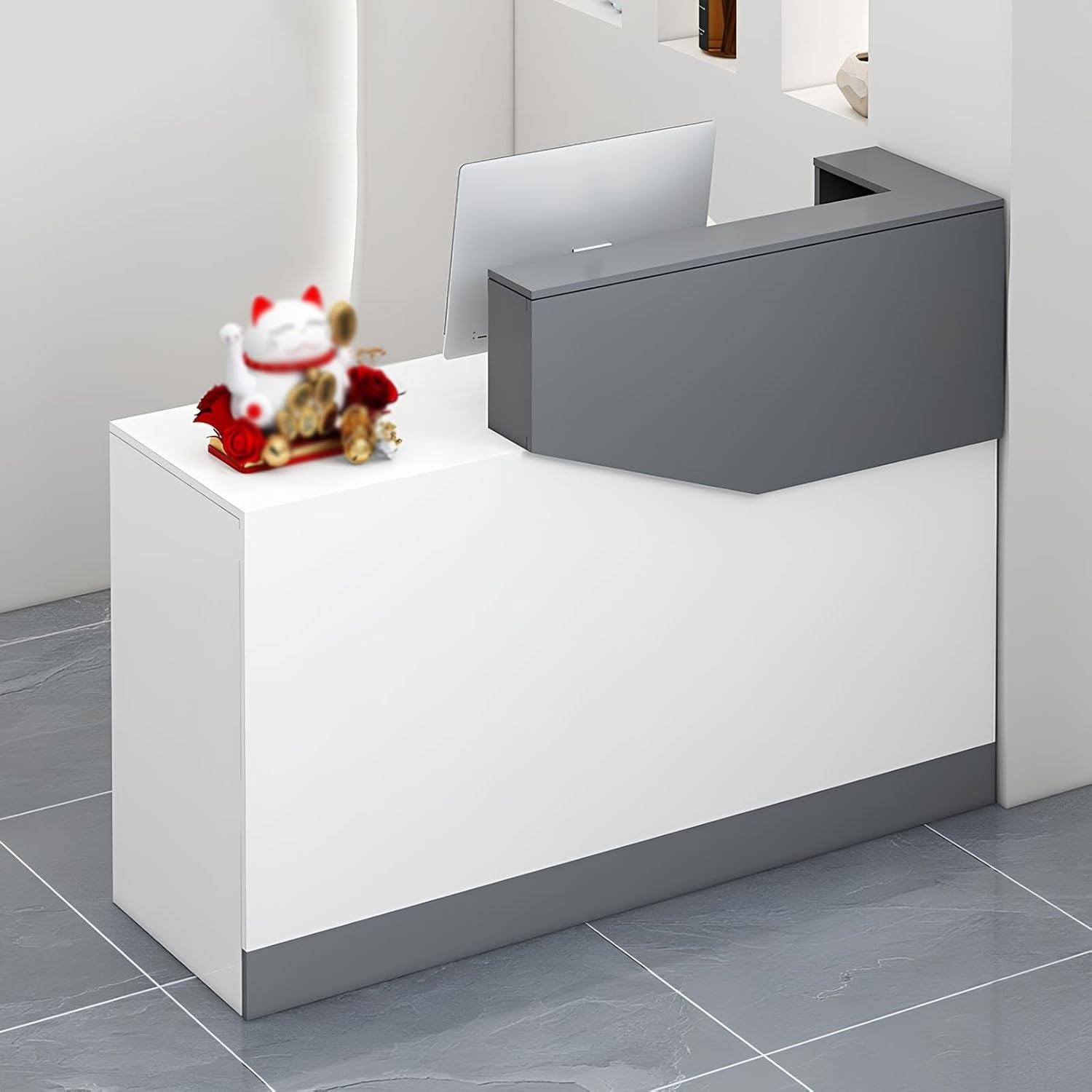 Standing Retail Checkout Counter Table:Features: - Baffle design protects privacy. - The wide desktop provides you with enough space to work smoothly and comfortably. - High-quality boards, strong load-bearing capacity, can be moved and placed. Specification: Product Name: Reception Desk with Counter, Small Reception Desk, Front Desk Reception Counter Product Material: E1 grade environmentally friendly board Style: Modern and simple Package Size: 100×45×100cm/39×17×39in 120×45×100cm/68×17×39in Products Included: 1* Reception desk Notice: 1. Due to manual measurement, there will be a 1-2cm error in the finished product, please understand. 2. The color may be slightly different depending on the shooting angle and light angle, and the product is subject to the actual product. 3. If you have any questions after receiving the package, please contact us in time and we will solve the problem for you in time.