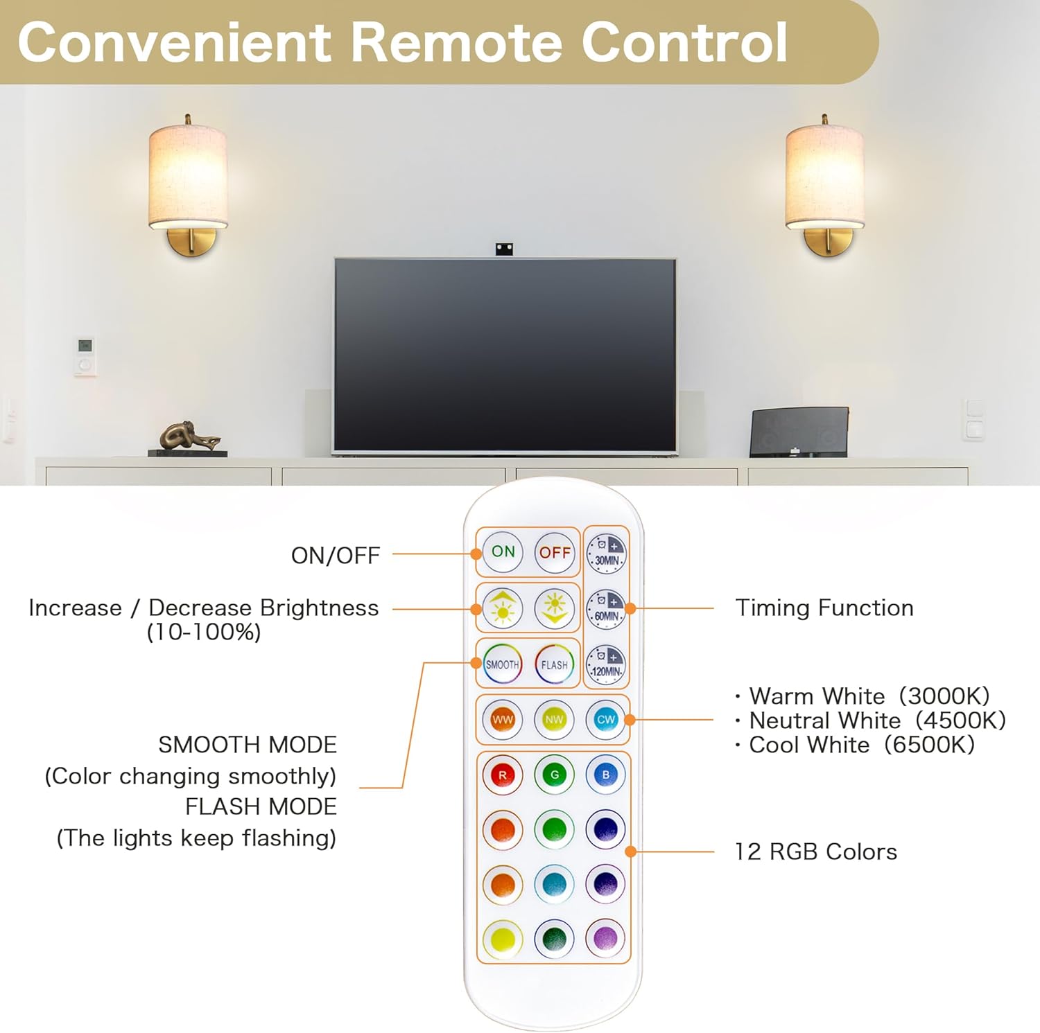 | Light Color | RGB, Warm White |