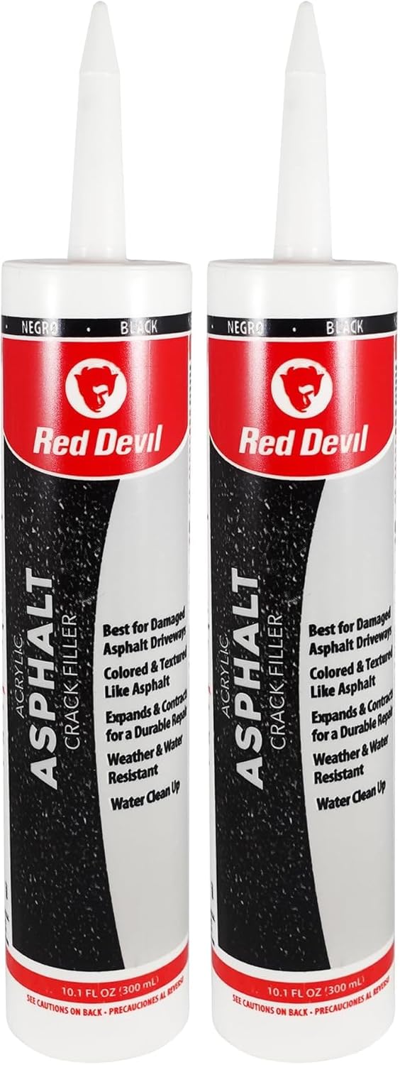 Protect and restore your driveway or asphalt surfaces with Red Devil 0637 Asphalt Crack Filler Sealant. Specially formulated to match the color and texture of asphalt, this high-performance sealant blends in perfectly while delivering exceptional durability. Ideal for sealing cracks and joints in driveways, sidewalks, parking lots, and other asphalt surfaces, this acrylic-based formula forms a strong, weatherproof seal that resists cracking, shrinking, and peeling. It remains flexible as temperatures change—expanding and contracting with your pavement to prevent further damage. Designed for convenience, it adheres even to damp surfaces, so you can apply it when conditions aren’t ideal. Just load it into a standard caulking gun and apply—it’s that simple. Whether you're a DIYer or a professional, this Made-in-USA product ensures your asphalt surfaces stay protected and looking their best.