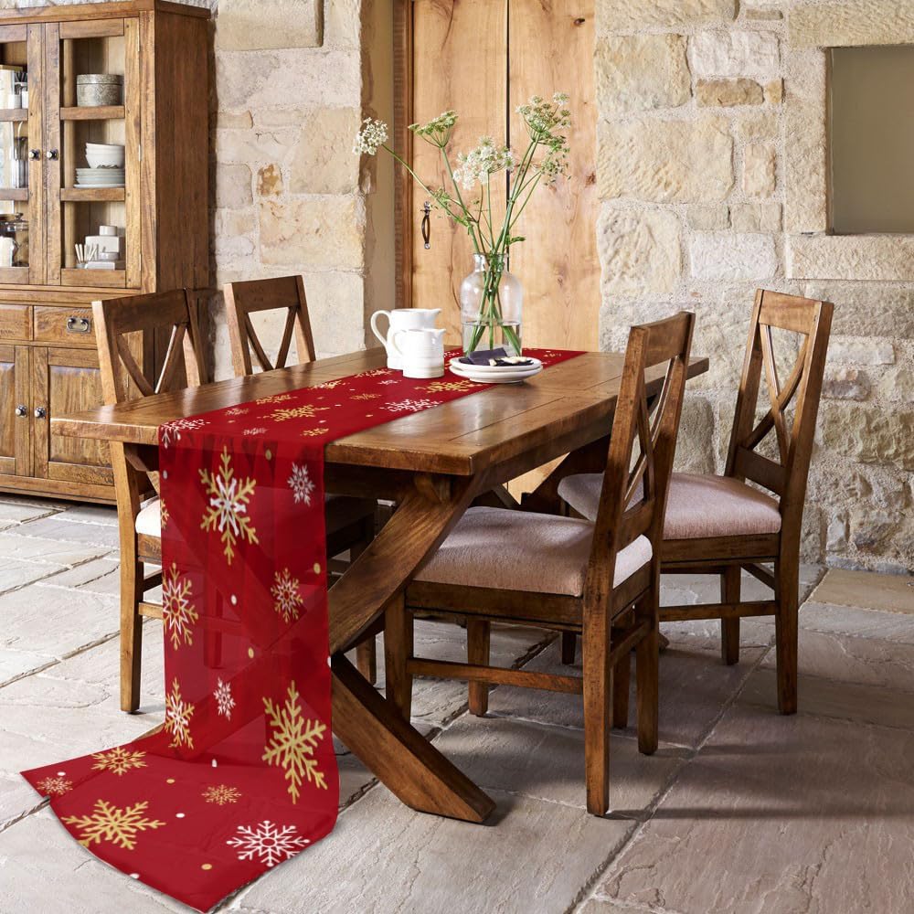Christmas Chiffon table runners will give you a soft and comfortable feel that can instantly change the look of your table and wow your guests.❤Soft & Durable Table Runner- Runner for table made of chiffon material is more skin-friendly and elegant.- Sheer table runners are breathable and do not completely cover the look of the table.- Round table runner can withstand long-term sunlight exposure, is not easy to deform and fade, and is suitable for outdoor use.- Eco-friendly and odor-free gauze table runner can be used on the dining table.❤Sewing Technology- Table runner wedding is made of high-tech machinery, with higher density and is not easy to be scratched.- Runner for dining table is surrounded by a solid edge, and the wiring is tight and not easy to fall off.❤Protect Your Desktop▶Placing hot food on the kitchen table runner can avoid hot food from burning the table.▶Using sheer table runner can reduce the screeching sound of tableware colliding and create a quiet dining environment.▶When the rustic table runner is applied to the dining table, it can protect the table top from scratches by sharp utensils such as knives and forks.▶Table runner for party avoid the stains from seeping into the table top during the meal.❤Unique Chiffon Decoration▶Country table runner can be used in various places as a dining room table runner, coffee table runner, wedding table runner, banquet table runner, birthday table runner, living room table runner, dress scarves, bedroom table runner, kitchen island table runner and so on.▶Elegant gauze table runner are perfect for decorating tables and chairs in sunrooms, gardens, patios, picnics, camping and more.❤Runner Table Tips- Do not use bleach when cleaning the outdoor table runner.- Please do not scratch the farmhouse table runner with sharp objects.