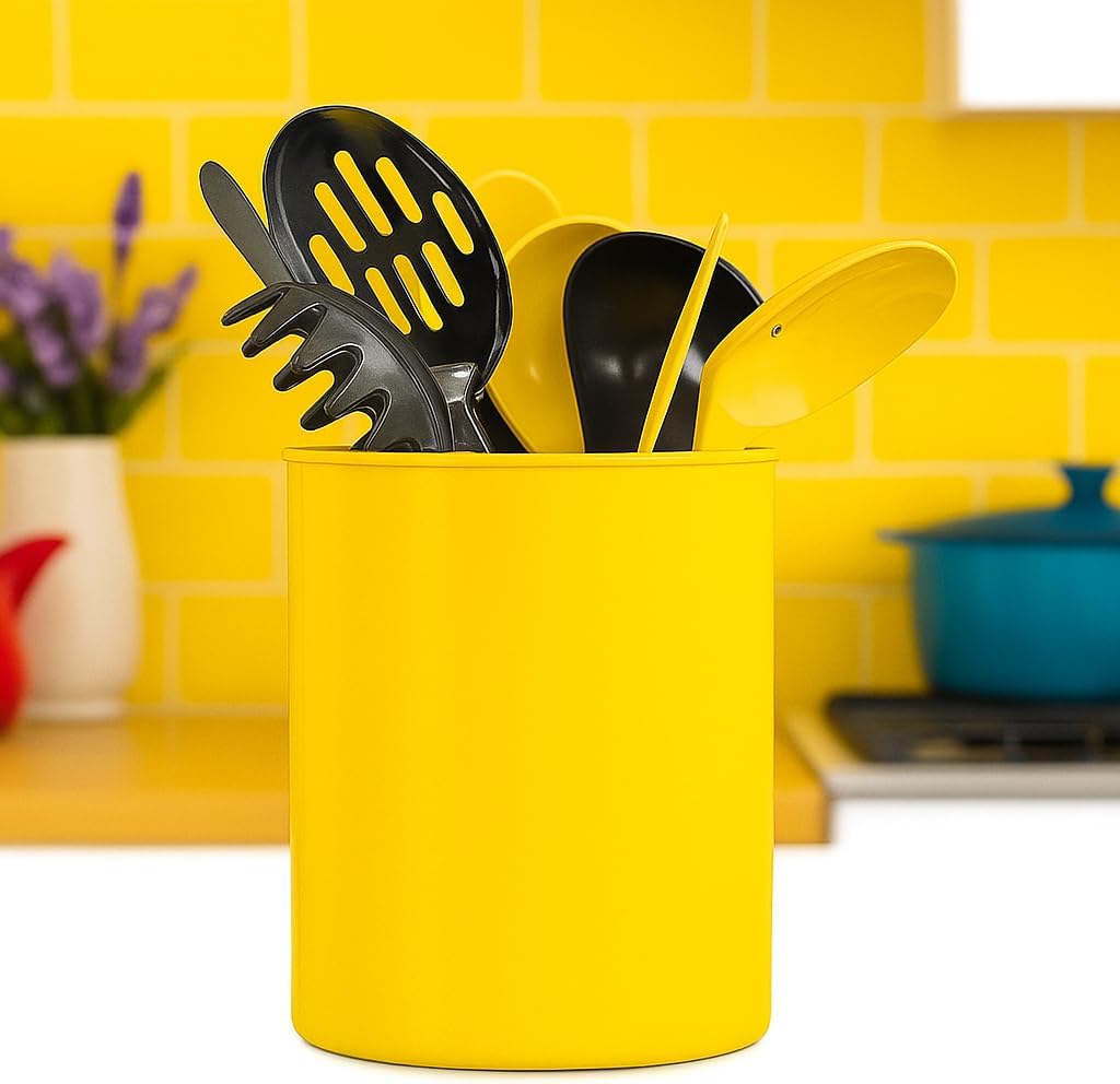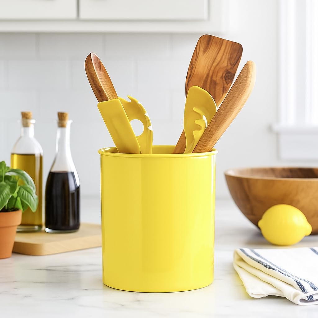 This holder was created for all your kitchen utensils, no matter what they are made out of. This wider opening holder will hold up to 20 different kind of utensils and tools. Use this holder for all your wooden, steel, silicone, melamine, and enamel on steel utensils. Heavier steel utensils can scratch or chip utensil holders which makes ours unique. If you get in a hurry or if the jar gets pushed to the floor, our utensil holder will not break. There are enough things in the kitchen to worry about so collect all three sizes of our utensil holders to put the right utensil where you need it most.