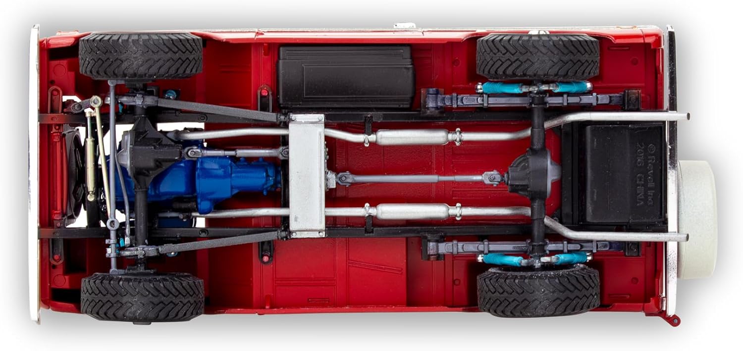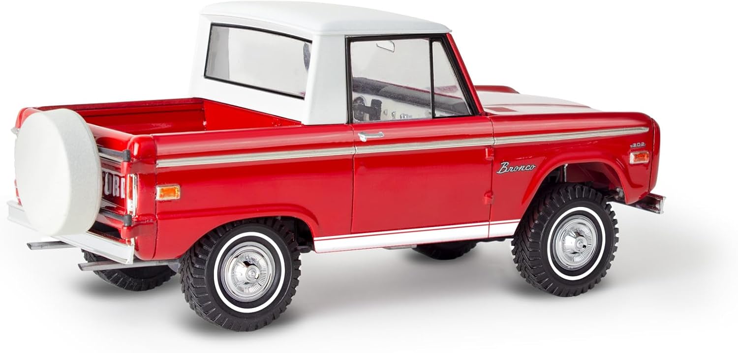 When Ford introduced the Bronco in 1965, it was offered in 3 different versions. This version was referred to as the Sports Utility or pick up truck. It featured 4-wheel drive and off-road suspension. The Bronco was built on a 92-in. chassis that it did not share with any other Ford product. The basic Bronco did not have many creature comforts but did offer a long list of options. This first-generation Bronco sold from 1966 to 1977 averaging about 18,000 units per year. In addition to the pick-up truck style, you could also get the Bronco as a Roadster or a Wagonette. Today restored Broncos are commanding extremely high price tags. This Revell model car kit is Revell item #14544. The kit consists of 140 parts and is 1:25 scale. Completed model measures approximately Length: 6.375", Width: 2.75", Height: 2.812". Kit is molded in white and clear with chrome plated parts and soft black tires. Paint and glue required(not included). Recommended for ages 13 and up.