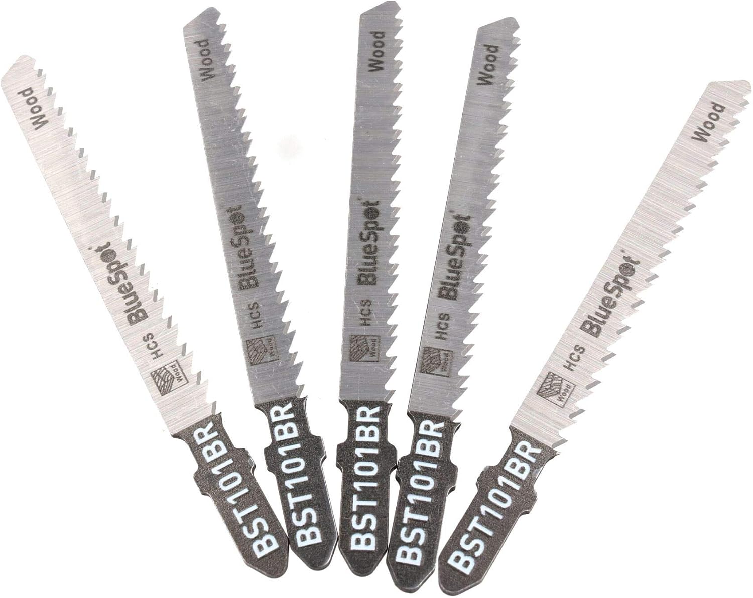 Professional jigsaw blades for commercial or occasional use Reverse tooth Wood cutting jigsaw blades Reverse tooth downward cutting design is ideal for producing clean top surfaces with minimal splintering Suitable for use on wood and plastics with a thickness less than 30mm Designed for cutting hardwood, softwood, chipboard, plywood and plastics Teeth spacing 2.5mm 10 TPI blade design is perfect for cutting wood and plastic with a thickness less than 30mm Manufactured from high carbon steel to ensure a long lasting quality Suitable for use with most popular jigsaws that require a T shank including Bosch, Dewalt, Makita, Malabo and AEG This listing is for a 50 pack of blades