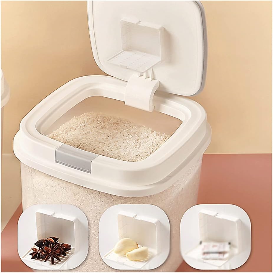 We promise to provide excellent products at affordable prices without sacrificing quality. Our responsive customer service team is fully committed to ensuring you get the best experience! 【Name】Automatically open the lid and seal the rice bucket 【Size】27.7X26.9X26.9cm/ 【Material】HIPS benzene, silica gel, PP material 【color】White 【Capacity】10kg Note:Items other than the products shown in the product description display are for demonstration purposes only and do not include cereals. 1. The dimensions are all manually measured, there may be slight errors in actuality. 2. Due to light problems, the picture may have a certain color difference, please refer to the actual product! After sale: Welcome to our store! Our shop will provide you with 24-hour online customer service. If you have any questions, please contact our customer service! All products will pass our quality control before leaving the factory. After receiving the goods, if the product is unusable due to shipping damage, please feel free to contact us via Amazon email to solve this problem.