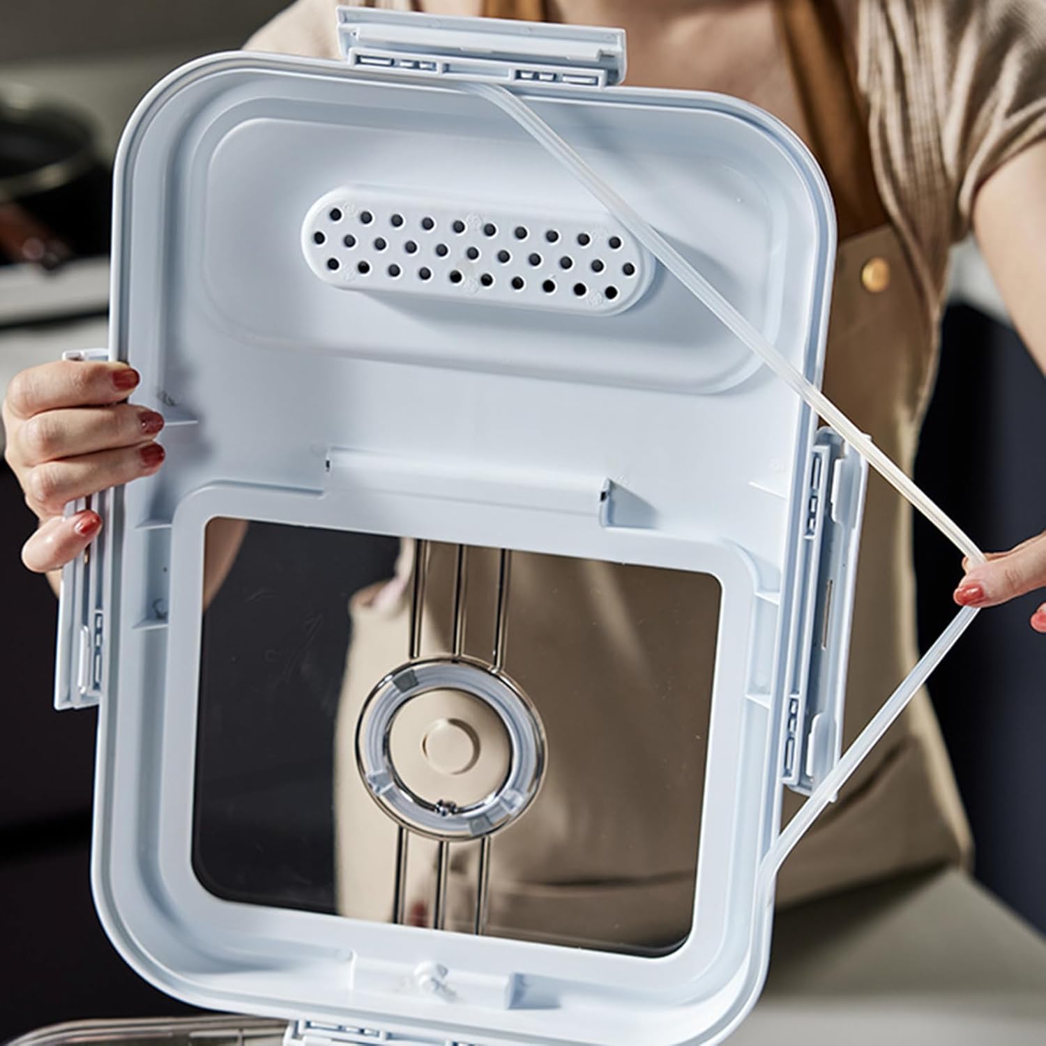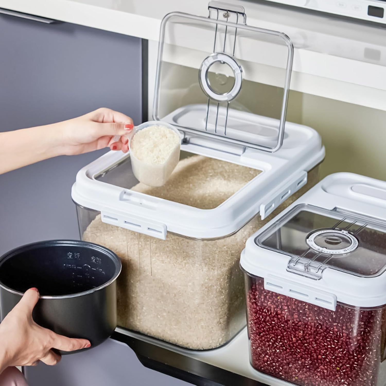 Rice Holder Airtights Rice Storage Container For Kitchen Countertop Suitable For Homemade Breads Toasts OrganizationFeatures:This Rice box is designs to keep your Rice, Toasts, and snacks for long time with its lid and time feature.Craft from this Rice storage container is sturdy, easy to and features clear designs that allows you to see the remaining contents.For homemakers, kitchen enthusiasts, and anyone who needs to store Rice, this product is for those who value food.Suitable for kitchen countertops, dining room, and food storage room, this Rice case can used to store not only Rice but also other dry goods like pastas, rice, and snacks.With its white designs, this Rice holder adds elegant to your kitchen while keeping your Rice organized.Specifications:Component: Type As Picture Show, Two Type to ChooseSize: 31x20x17cm/12.2x8.07x6.69inchPackage Includes:1pc Kitchen Rice ContainerNote:1.Please allow 1-2cm errors due to manual measurement, making sure that you will not mind before order. 2.Due to the differences between different monitors, the picture may not reflect the actual color.