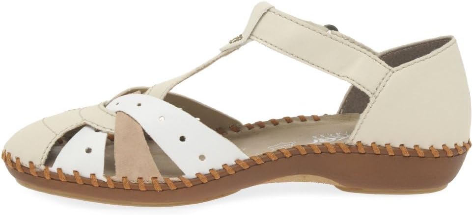 Attention, favourite shoe potential. These Rieker strappy sandals in light beige are guaranteed to bring you in the holiday mood. The shoe is put on in no time thanks to a Velcro fastener. The sole is both lightweight and shock-absorbent, providing double comfort with every step. In addition, the extra soft insole ensures an extra dose of comfort. In addition, your feet are offered more freedom of movement in the forefoot area thanks to the comfort width G. Simply top.