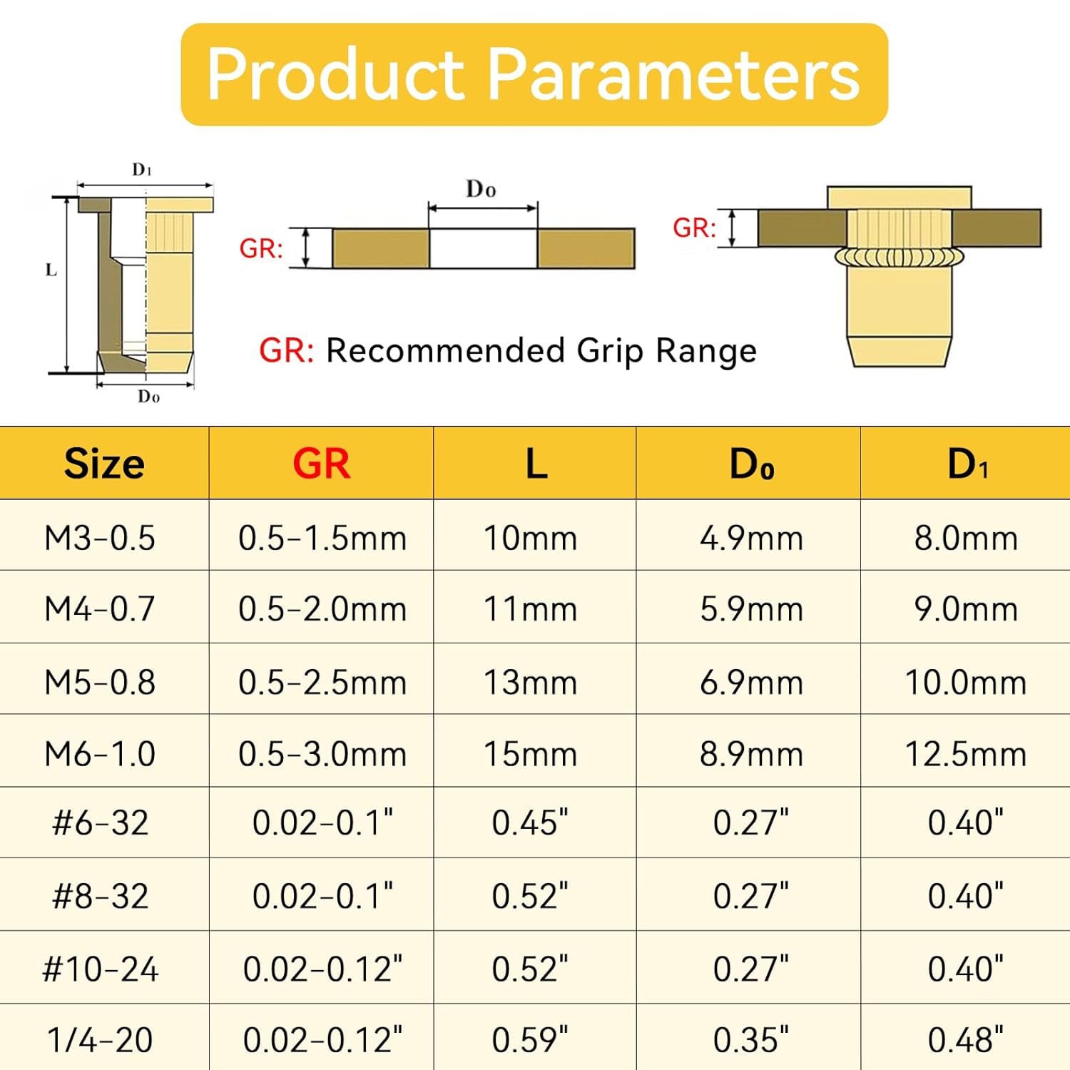 Rivet Nut Assortment Kit & Duratl Rivet Nut Tool Kit