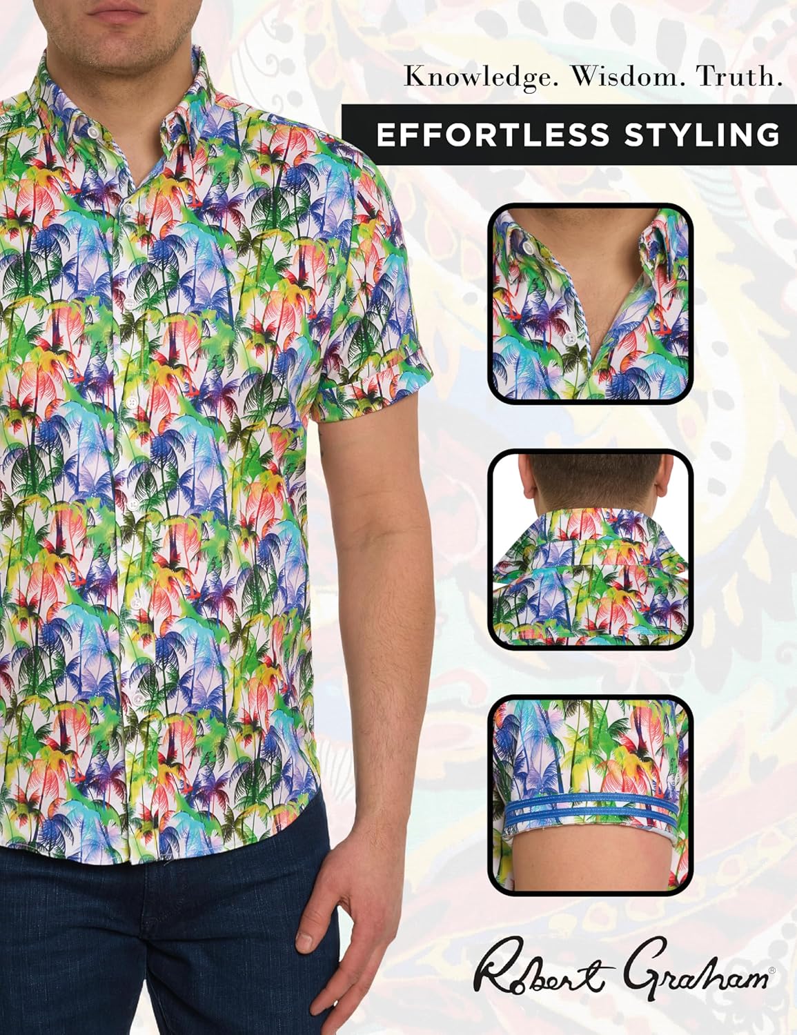 The Palm City Short-Sleeve Button-Down Shirt will make the perfect addition to any wardrobe. Our printed shirts for men are casual yet dressy enough for almost any occasion and feature a point collar, button front, and trendy tropical print. Tuck one into a solid-colored pair of dress pants for a dressed-up look, or pair it with denim and wear it over a tee for a night out. It will become a wardrobe staple for your professional and everyday outfits.Our men’s casual button-down shirts offer a classic fit and are available in a variety of sizes so you will always make a stylish statement. Made from high-quality 100% cotton, each shirt is machine washable in cold water.Robert Graham has been an innovator in clothing design since 2001. We strive to create original and wearable art that helps you create unique fashion and style. Each item is carefully crafted with high-quality lush textiles to create a one-of-a-kind wardrobe staple that you will want to wear again and again. With our rich fabrics and unparalleled craftsmanship, we embody luxury at its finest.