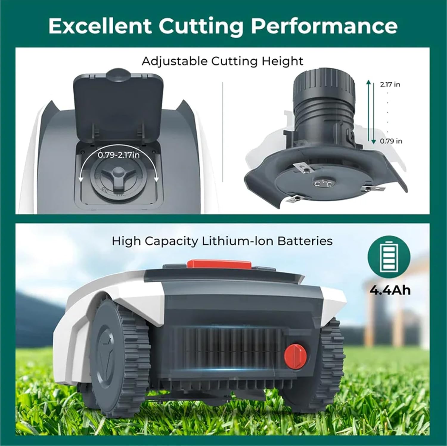 Our Automatic Robotic Lawn Mower allows you to sit back and relax while this lawn mower quietly trims the grass without leaving streaks. Easy to clean, simply spray it down with a garden hose and operable in all types of weather and terrain for optimum results. Feature: Boundary & Guiding Thanks to guide cable, it navigates reliably through all lawn areas and back to the charging station via the shortest route.Use the boundary wire to specify exactly where the mower should go, enabling you to stay in control and keep your mower safe. All weather and terrain Capable of mowing the lawn, come rain or shine. Stay cozy and dry while your robot does the work for you. Complex lawns with grassy slopes up to 25percent (14°) are no match for this mower. Easy to Clean Cleaning your robotic lawn mower is uncomplicated. Simply spray down with your garden hose and you are ready to go! It is also weather proof! Specification Effective mowing height: 20-55mm (manual height adjustment) Effective mowing width: 19cm Gradeability: ±25% (14°) Blade Quantity: 3 PCS Battery parameters: 20V 5Ah Charging time: 180 minutes Battery life: 120 minutes Working efficiency: 100㎡/h Charging pile: 23V 2A Applicable lawn area: 1500㎡/h Product size: 50*35*30 cm, 9kg Package List Automatic lawn mower Switch power cord Charging cable 200m boundary line Instruction manual