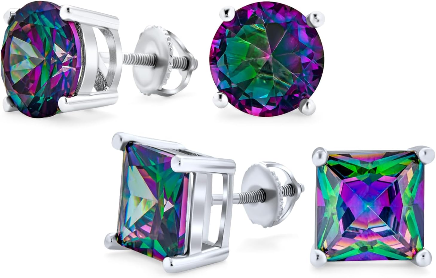 Featuring a gleaming simulated rainbow topaz CZ, these sterling silver unisex screwback studs offer striking color and timeless style. Perfect for any outfit, our round CZ studs are a versatile choice. Treat yourself or a friend to these luxe simulated rainbow topaz cubic zirconia earrings.