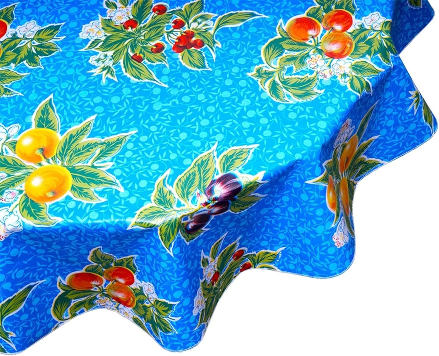 This tablecloth has a merrow finish. It is perfect for any kitchen, picnic, patio and poolside. Also ideal for parties and holidays because clean up is a breeze; Simply wipe clean! Use indoors our outdoors! Handmade in USA.