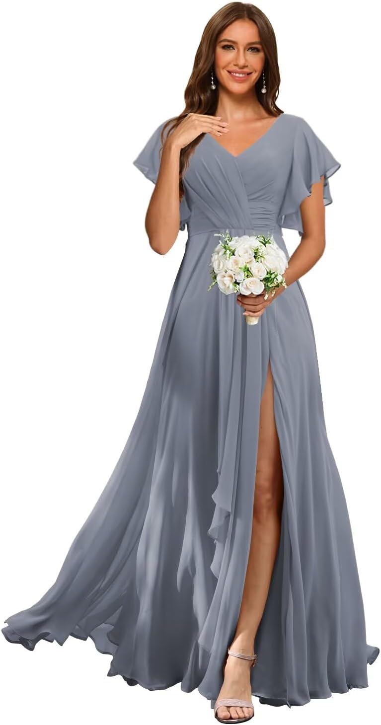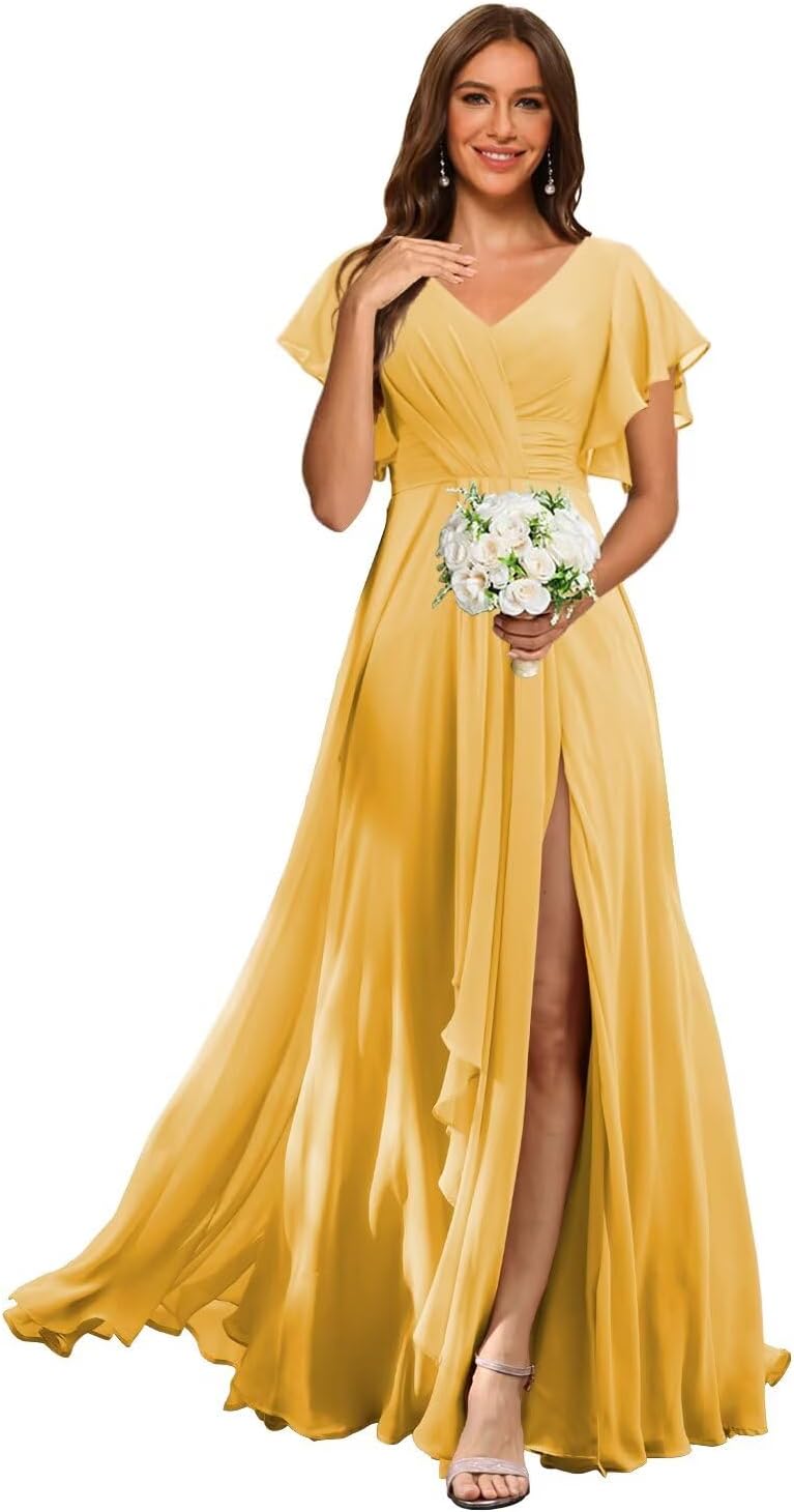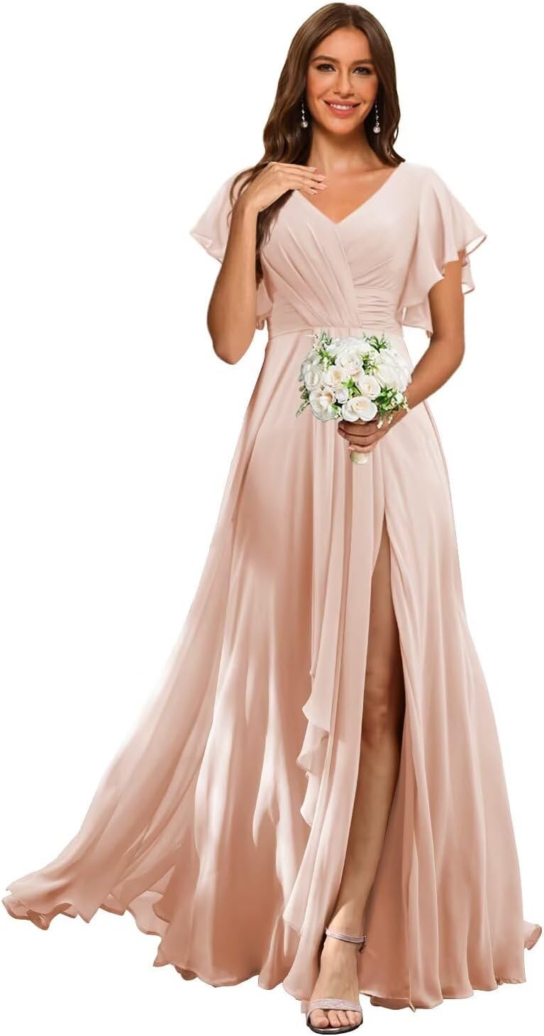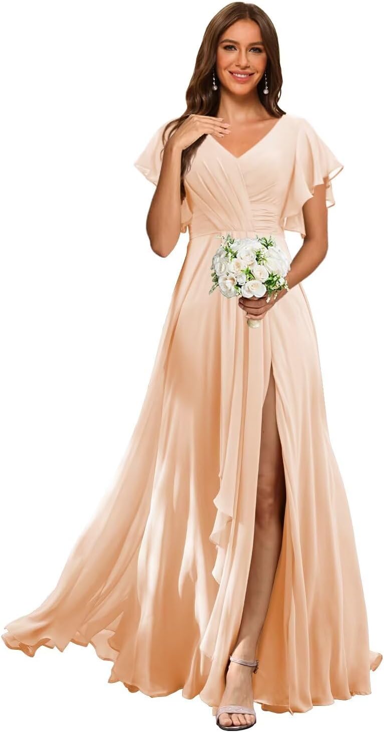 Welcome to RSOETOO! We have been engaged in manufacturing women dresses for more than 10 years, including Women's Wedding Dresses, Prom Dresses, Bridesmaid Dresses, Homecoming Dresses, Formal Evening Party Gowns, and other Special Occasion Dresses. High Quality and Best Service are always our goals and we do that. Item DescriptionFabric: High-Quality Chiffon, and 100% HandmadeSleeves: Flutter Sleeves Dresses Length: Floor LengthSilhouette: A LineNeckline: V NeckBack Design: Lace Up BackCustomized Services:If you want to customize the dress, please complete the format when you place the order.1.Bust: ___inch2.Waist: ___inch3.Hips: ___inch4.Shoulder to Shoulder :___inch5.Hollow to floor without shoes(Shoulder to Feet without shoes): ___inch6.Heel Height: ____inch7.Height___inch8.The date you need the dress___ 9.Phone number___