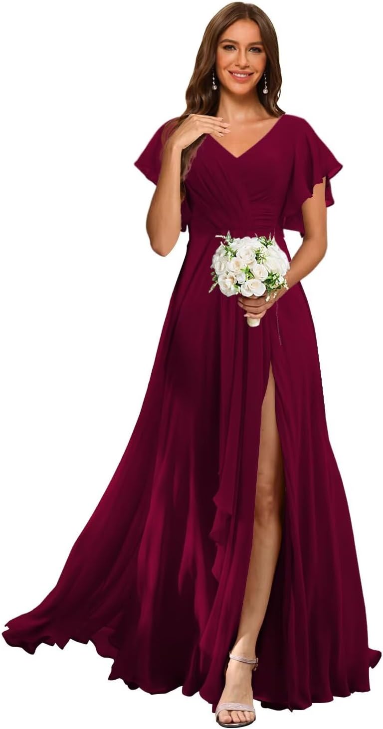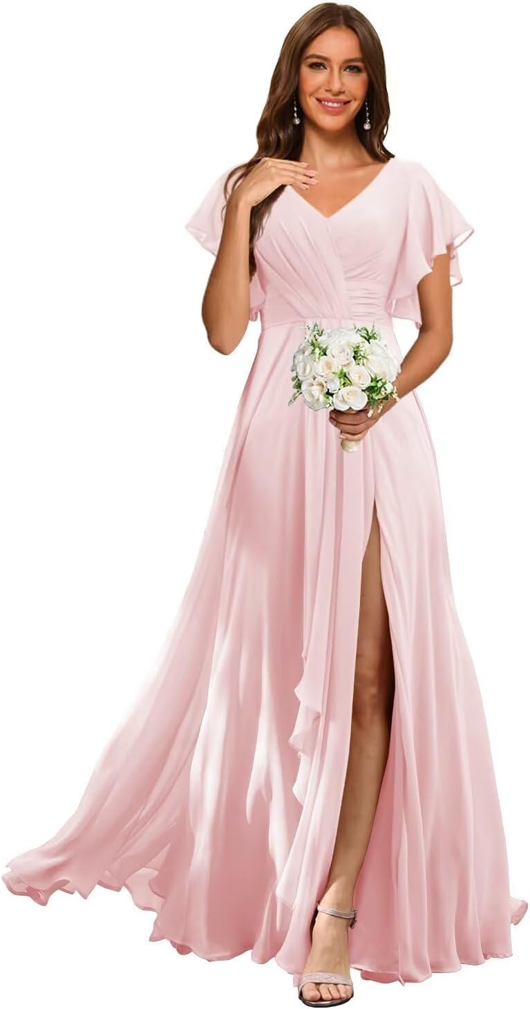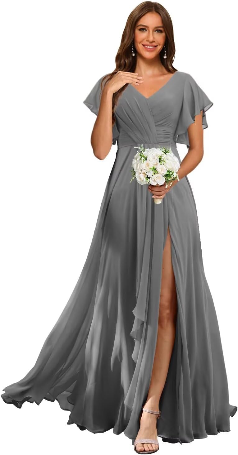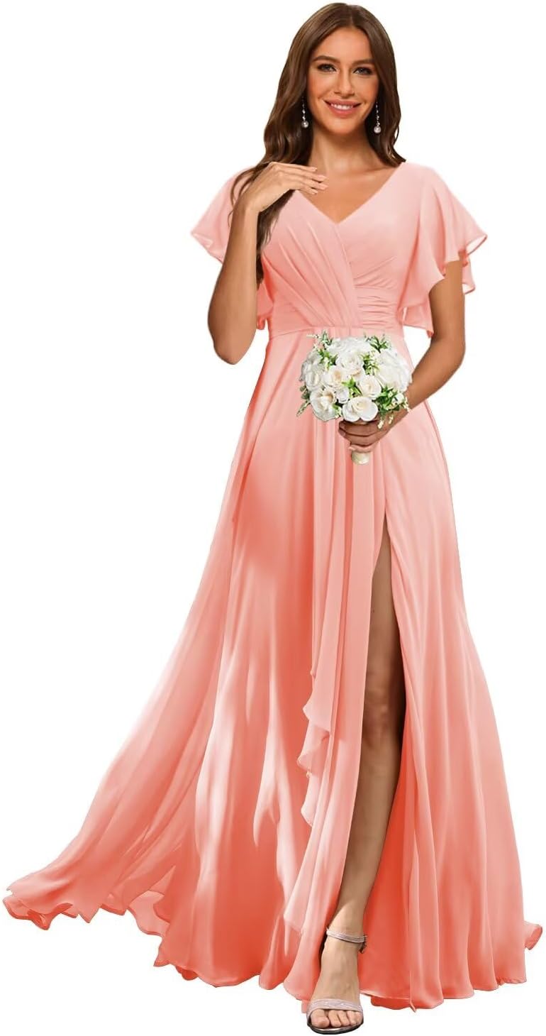 Welcome to RSOETOO! We have been engaged in manufacturing women dresses for more than 10 years, including Women's Wedding Dresses, Prom Dresses, Bridesmaid Dresses, Homecoming Dresses, Formal Evening Party Gowns, and other Special Occasion Dresses. High Quality and Best Service are always our goals and we do that. Item DescriptionFabric: High-Quality Chiffon, and 100% HandmadeSleeves: Flutter Sleeves Dresses Length: Floor LengthSilhouette: A LineNeckline: V NeckBack Design: Lace Up BackCustomized Services:If you want to customize the dress, please complete the format when you place the order.1.Bust: ___inch2.Waist: ___inch3.Hips: ___inch4.Shoulder to Shoulder :___inch5.Hollow to floor without shoes(Shoulder to Feet without shoes): ___inch6.Heel Height: ____inch7.Height___inch8.The date you need the dress___ 9.Phone number___