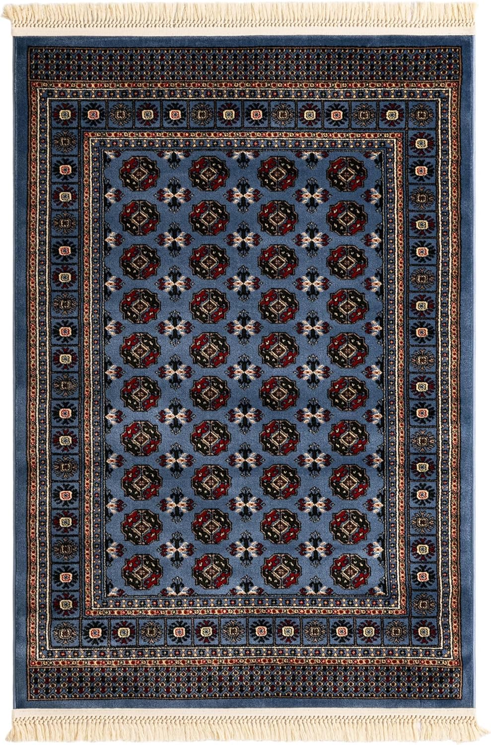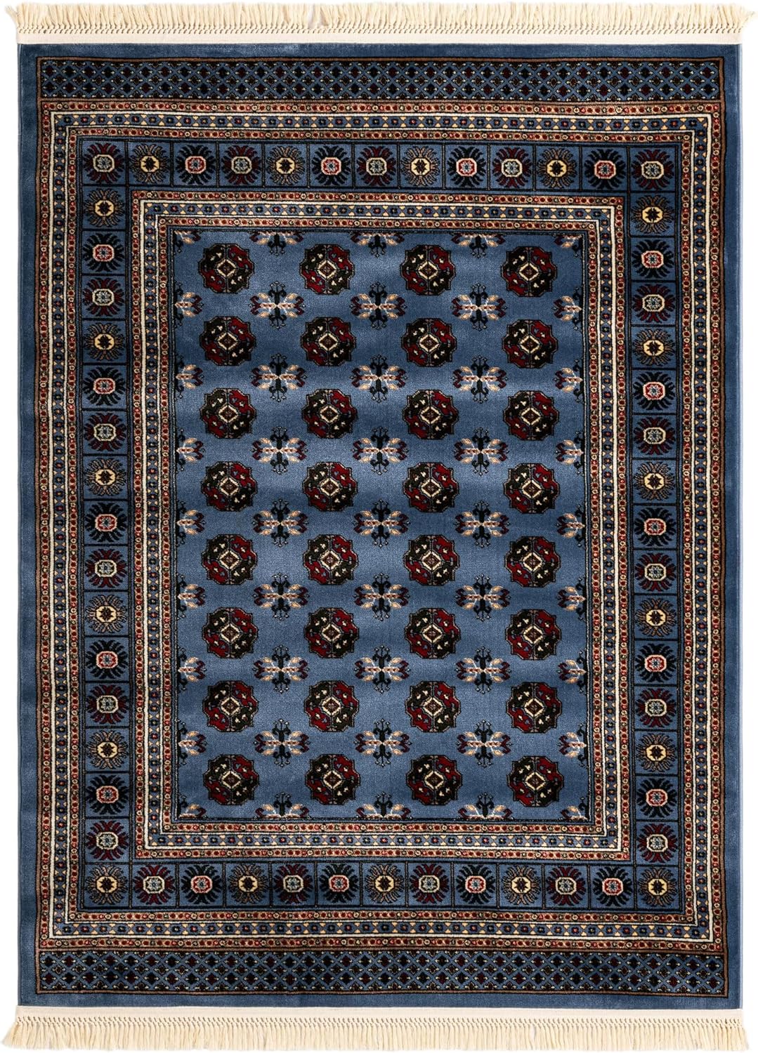 The Bokhara Collections classic design and vibrant color palette make it a versatile choice for various interior design scenarios. It fits seamlessly into traditional settings, bringing warmth and an element of classic sophistication. In a more modern space, this rug could serve as a contrasting piece that adds depth and historical character. It is well-suited for living rooms, dining areas, or any space where an elegant yet durable rug can enhance the overall aesthetic appeal. Its texture is designed to bring comfort underfoot while offering a look that is timeless. The use of polypropylene not only enhances the durability of this rug but also provides a soft texture that is welcoming to the touch.