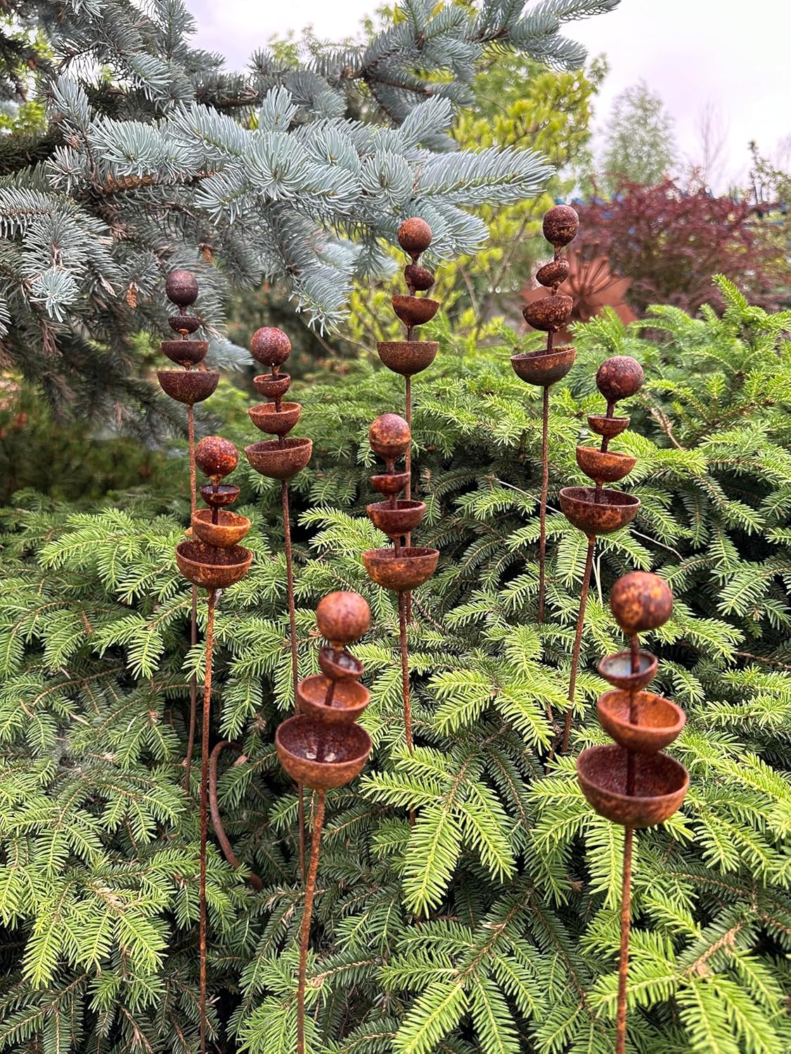 This Rustic metal flower budsset of 9 will place decorative accent in the garden compositions and landscape, create an atmosphere of romance and coziness in your home. This rusty metal art could be used as decoration at your home, in your garden, backyard, terrace or entrance to your home. This yard decor made from natural metal and it covered with a natural rust. This rusty garden decor can be used all year round, it is not afraid of precipitation, direct sunlight, etc. If you have any additional questions - don’t hesitate to contact me.