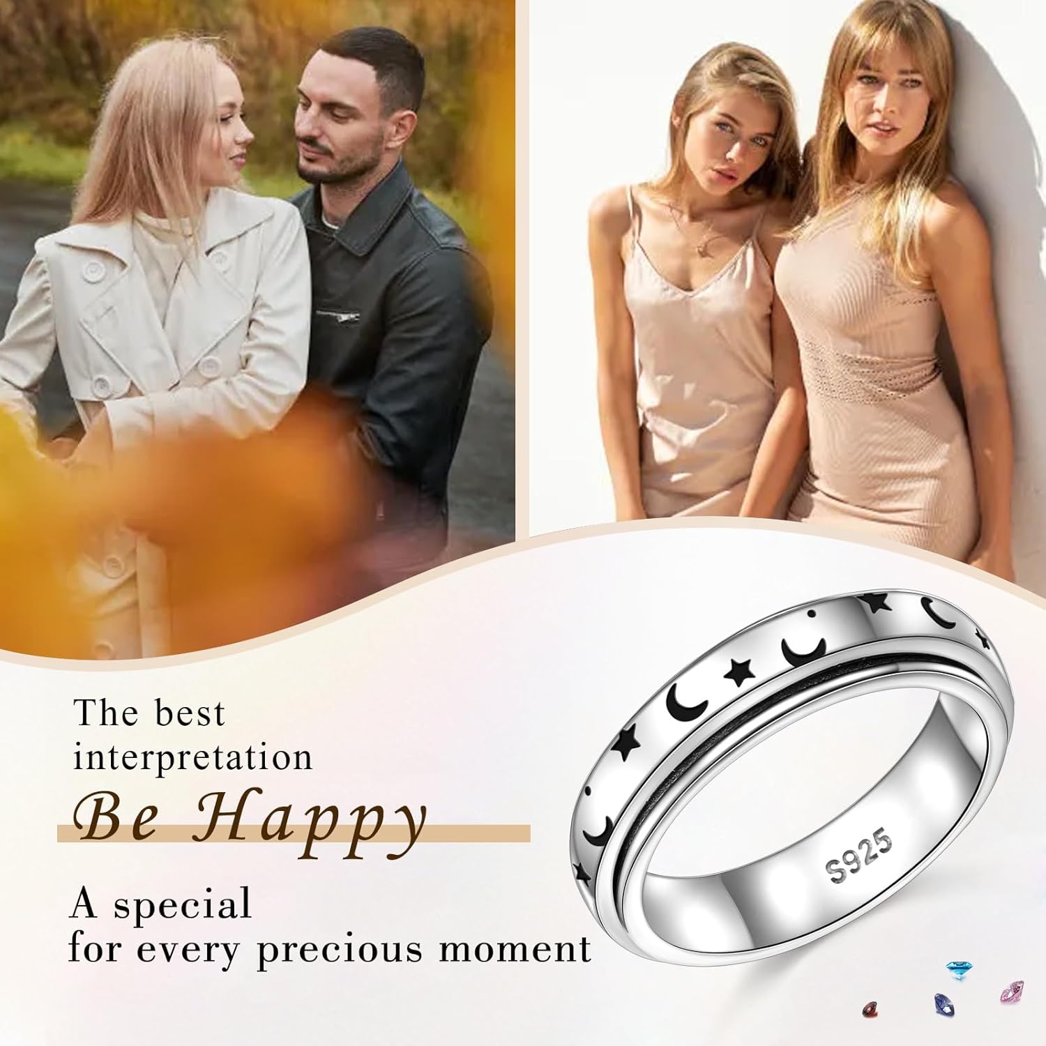 Ease anxiety and embrace celestial charm with our Moon and Star Spinner Fidget Ring. Designed as both stylish jewelry and a discreet anxiety relief tool, this spinner ring features a smooth-spinning band with a delicate moon and star – perfect for women seeking stress relief through subtle tactile stimulation. ✓ Features a silent fidget spinner for anxiety management ✓ Doubles as elegant moon jewelry with cosmic-inspired design ✓ Made of durable sterling silver for endless spinner ✓ Ideal for ADHD focus, work stress, or travel anxiety Whether worn as a symbolic moon star ring or used as a calming fidget, this versatile piece combines spiritual symbolism with functional design. A thoughtful gift for anyone needing discreet stress relief through sensory, or a beautiful addition to your anxiety ring collection.