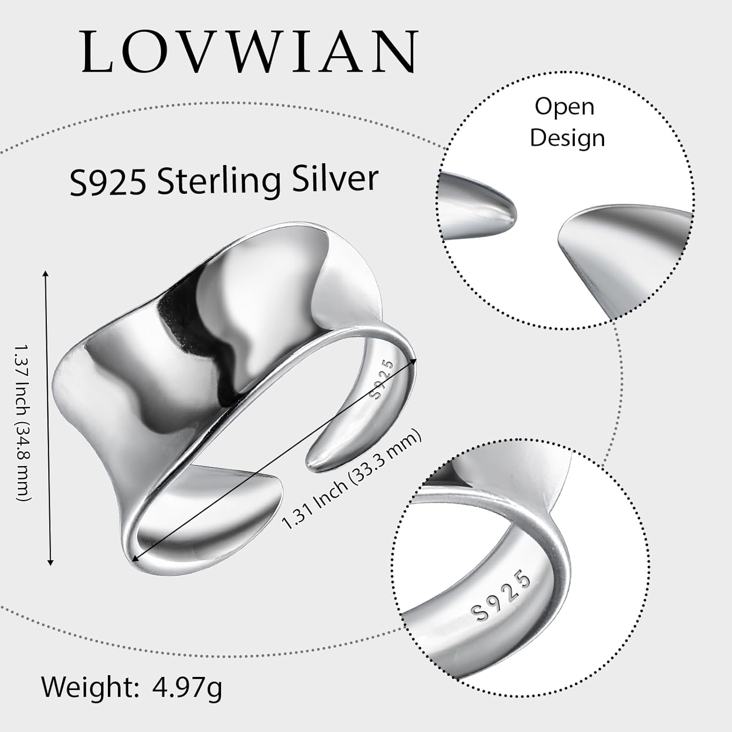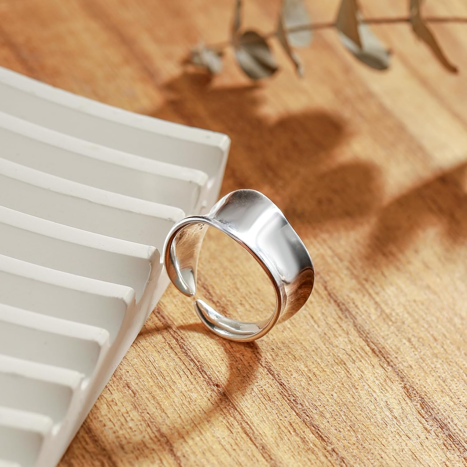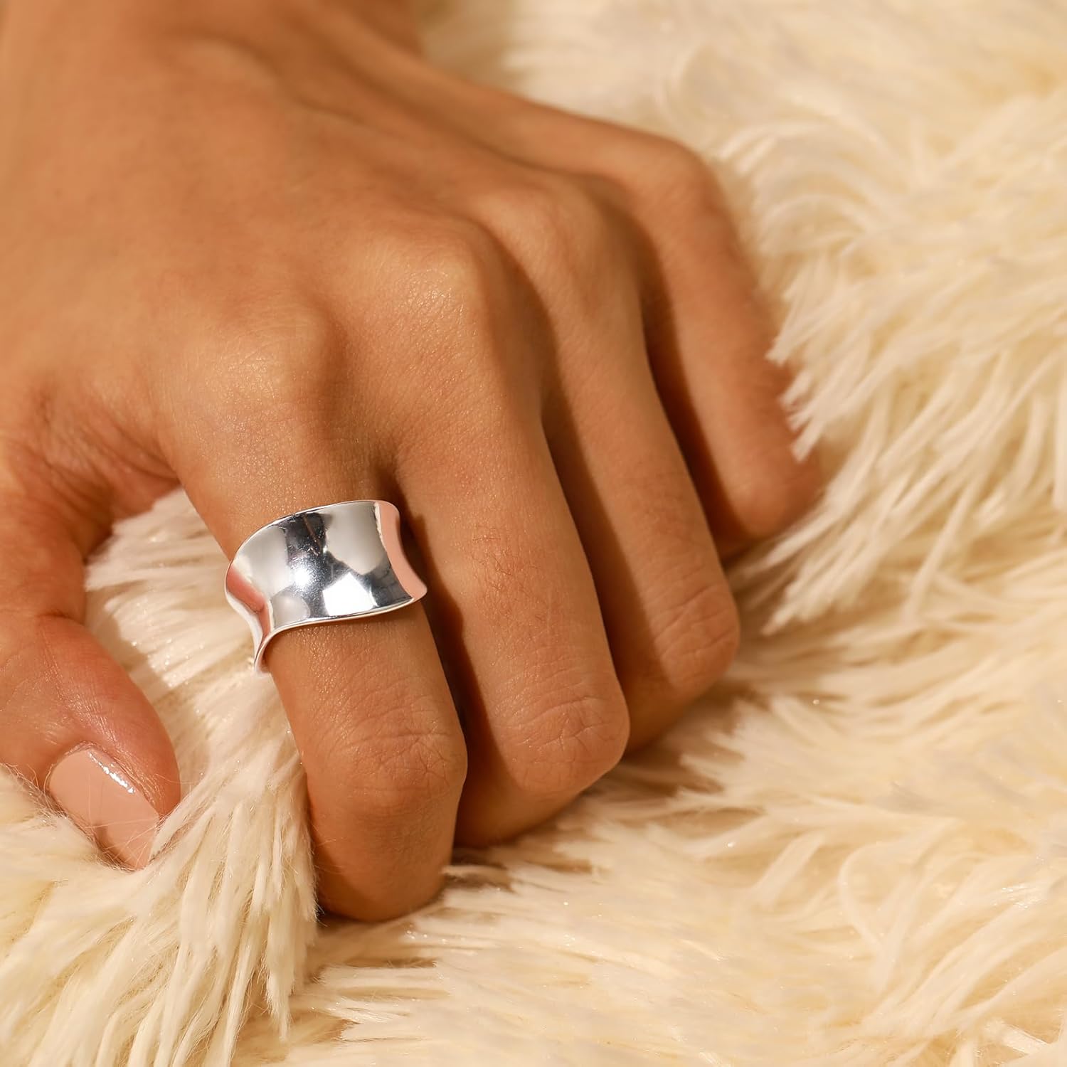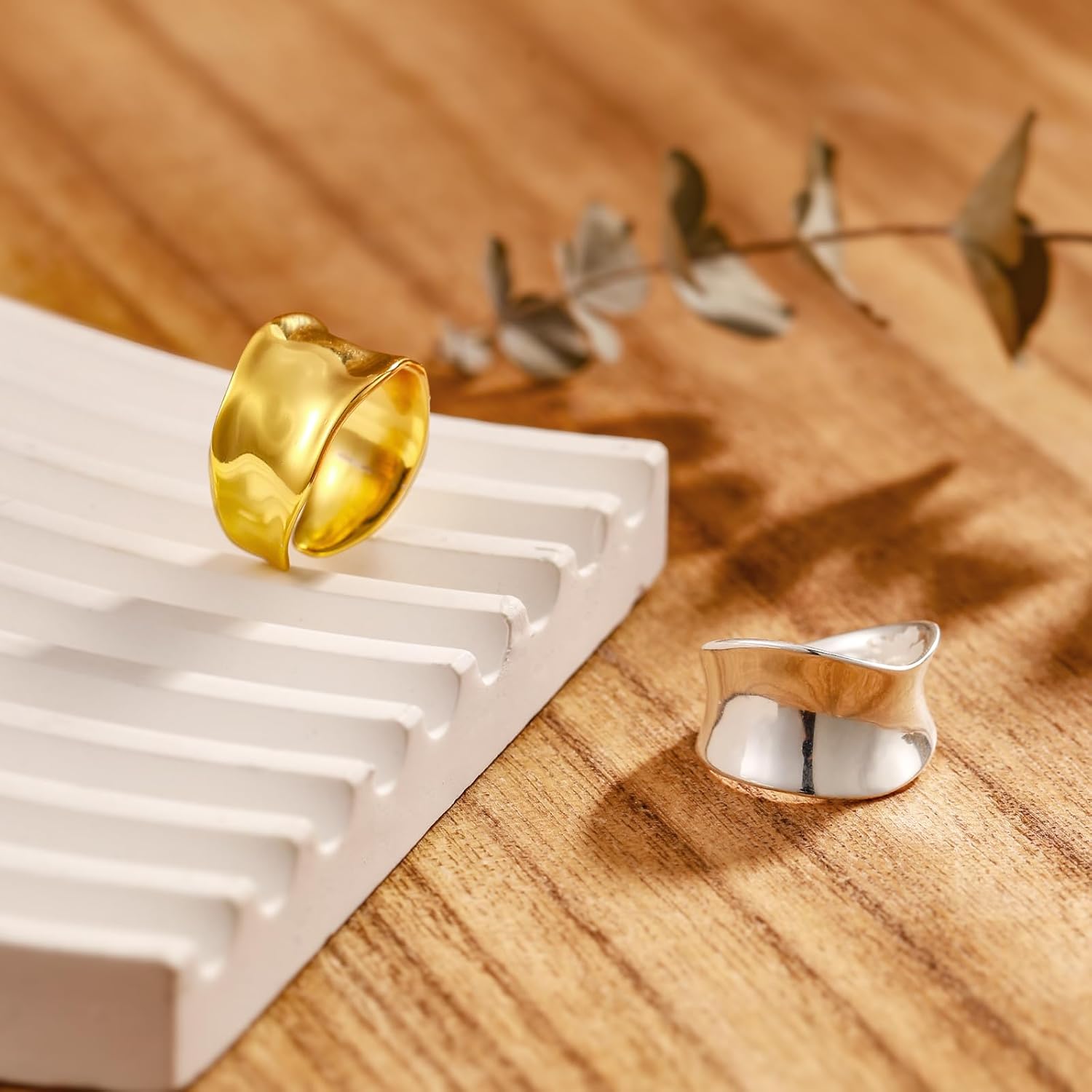 S925 Sterling Silver Wide Statement Band Ring for Women Men 18K Gold Plated Simple Chunky Wide Ring Large Thumb Index Full Finger Rings Non Tarnish Open Cuff Knuckle Ring Birthday Jewelry Graduation Gifts