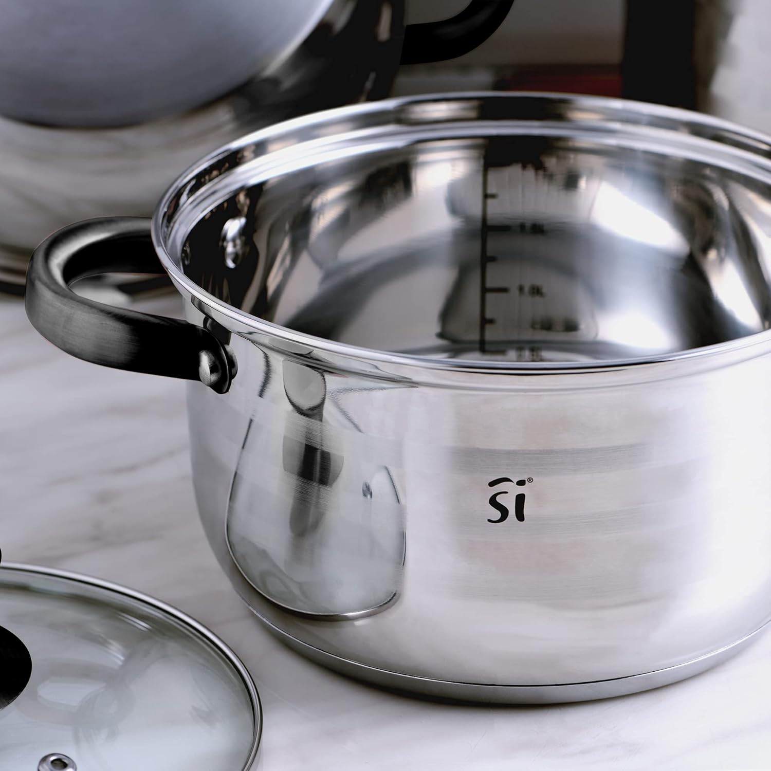 San Ignacio Jolie 8-Piece Cookware Suitable for Induction Hita in Stainless Steel with Set of 12 Silicone Lids