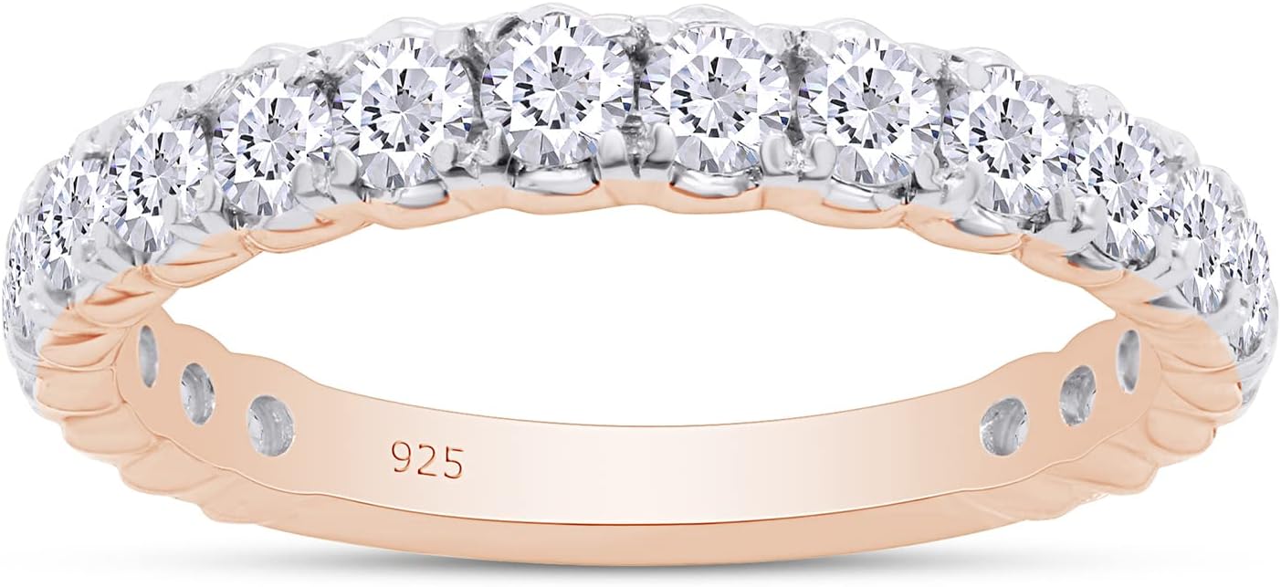 SAVEARTH DIAMONDS Round Cut Lab Created Moissanite Diamond Eternity Stackable Engagement Ring In 14K Gold Over Sterling Silver Jewelry For Women (VVS1 Clarity, 1.00 Cttw)