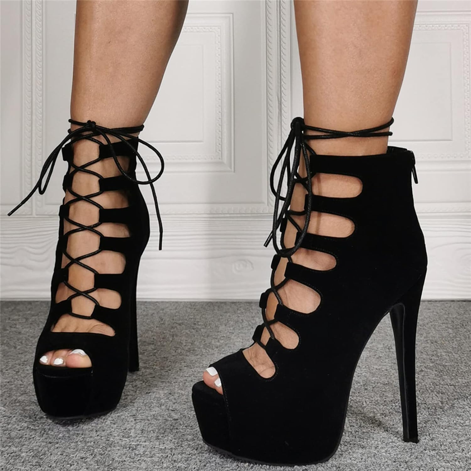 Heels height: 16 CM/6 inch(approx) Upper Material: SuedeInside material: LeatherOutsole Material: RubberImportant Note:1.Please noted size will have 1-5mm error as handmade.2.Due to computer image resolution and monitor settings, the color of the picture may be slightly different.3.Processing time :All the shoes is order-to-make,we will ship out your package within 5-10 work days after you making the order.Note(size): The shoe size is represented by the Chinese size. Please refer to the shoe size table and choose the correct shoe size according to your foot length. Thank you!If you are not so sure about the suitable size, please tell us aboutyour feet length and width.We will offer the suggestion to help you.