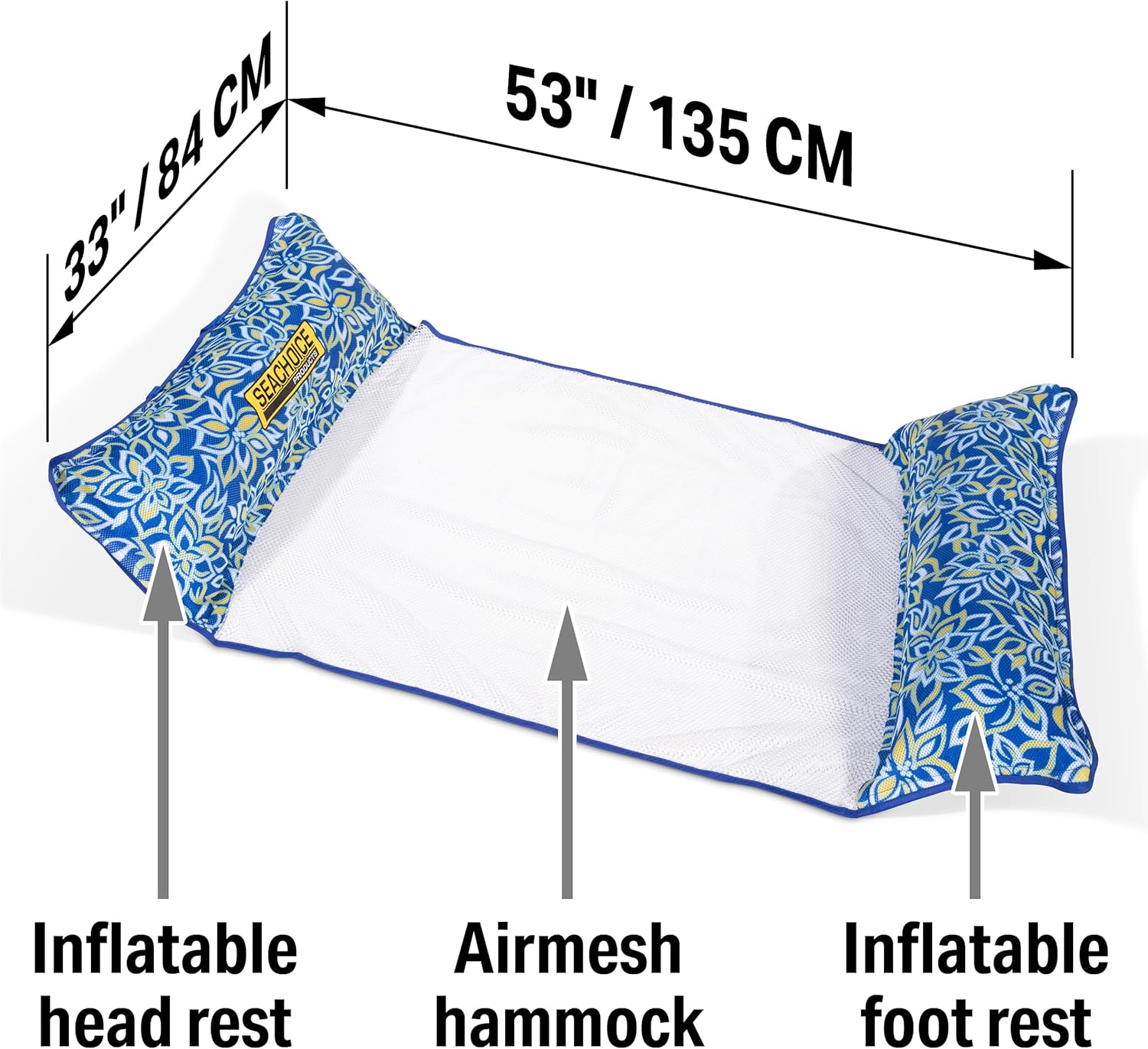 Unique 4-in-1 float system. Converts to hammock, drifter, exercise saddle, lounge chair. Ultrasoft Airmesh for comfort & cooling. Supportive mesh keeps you cool. Machine washable with removable pillows. Great for on-the-go, folds easily.