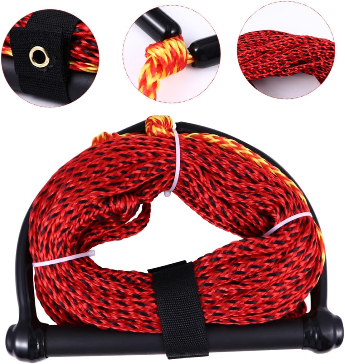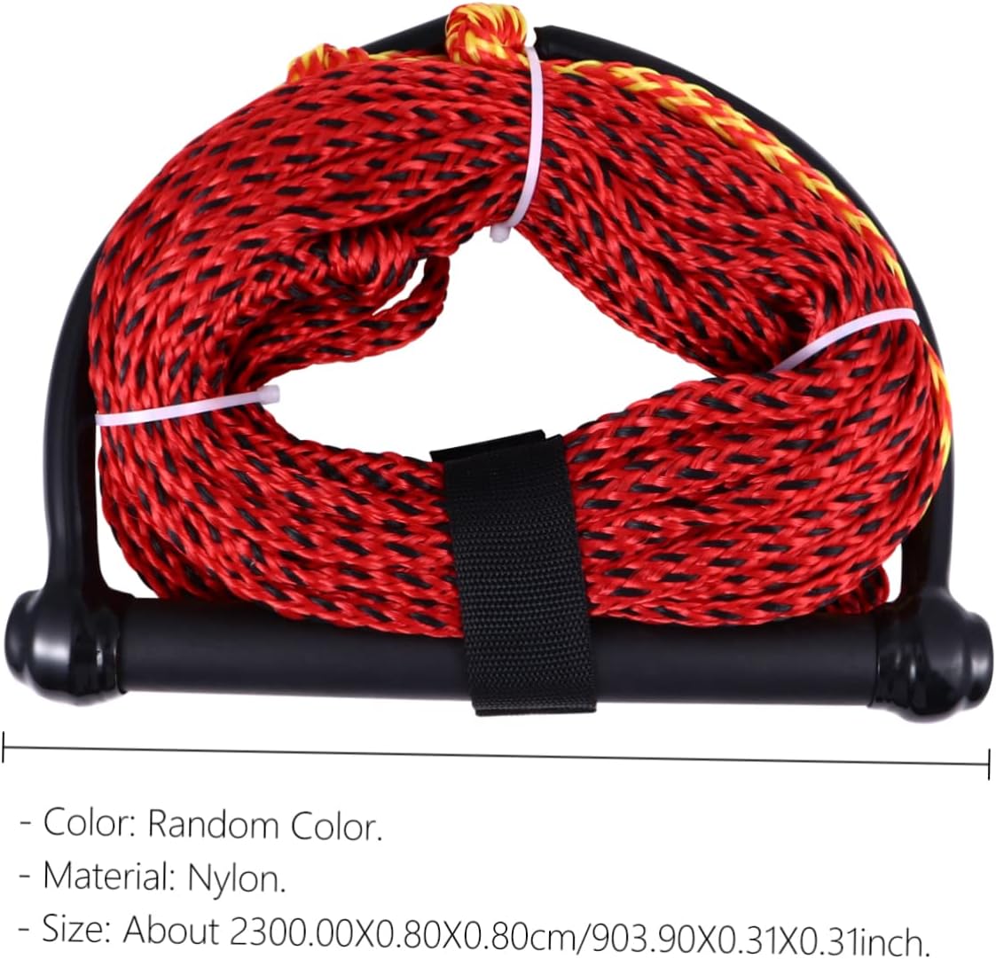 Package Include 1 ski rope Characteristics - Size: About 2300.00X0.80X0.80cm/903.90X0.31X0.31inch water ski rope and handle. -Product Info:Water skiing rope - Material: Nylon water-skiing rope. - ColorBlack boat ski rope - Bright color, easily be seen on the water, high abrasion and UV resistance boating rope with handle. - The braid structure makes this a lightweight, easy to handle rope kneeboard for boating. - The wakeboard rope features a lightweight, yet sturdy handle water skiing rope. - Made from nylon, it provides excellent resistance against moisture degradation water ski rope with handle. - Suitable for slalom water skiing, wakeboarding, knee boarding or hooking the rope up that bit closer to the boat water sports rope.Goods Informationwakeboarding rope This item is a single section ski rope is designed for all water sports, including water skiing, wakeboarding, tubing, and kneeboarding.boat rope 1-section water ski ropes are for beginners who have very little experience